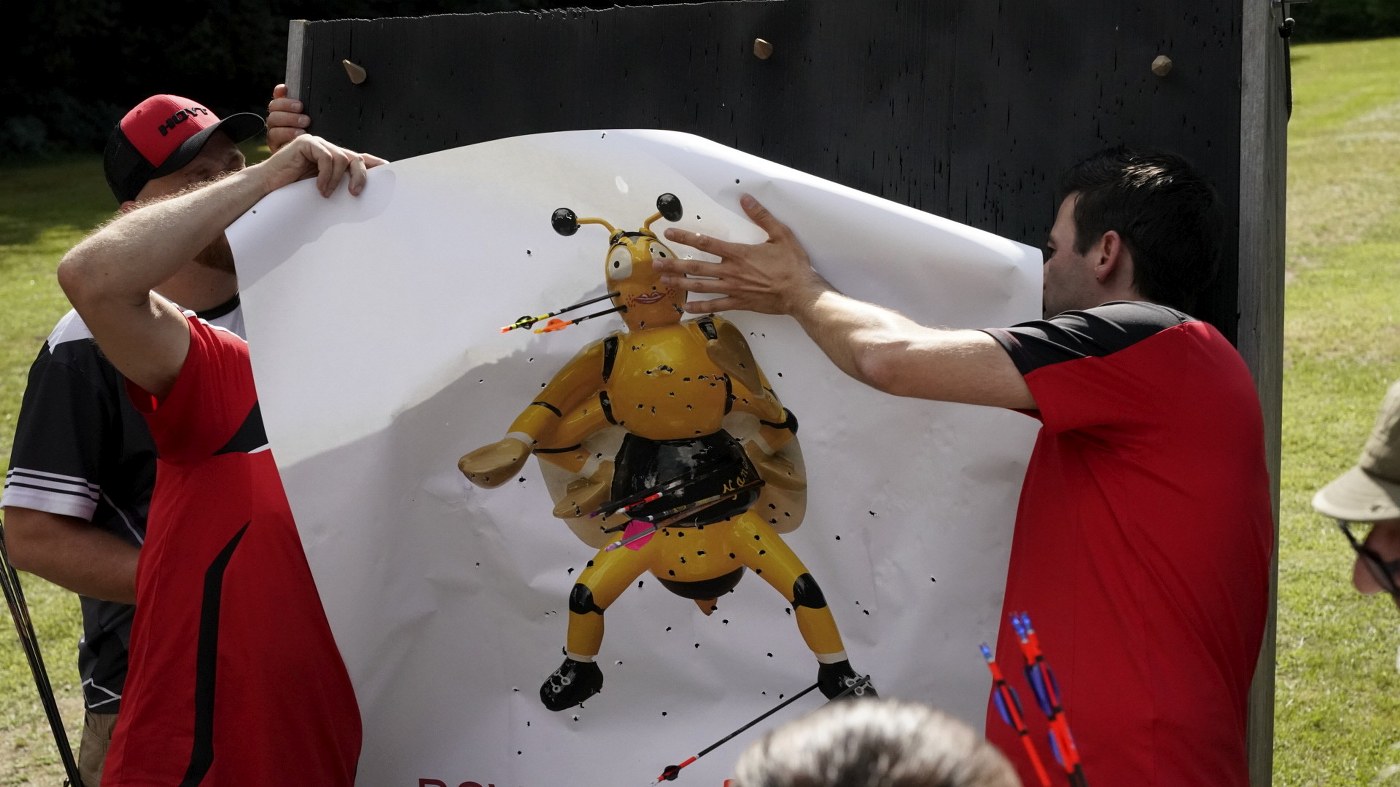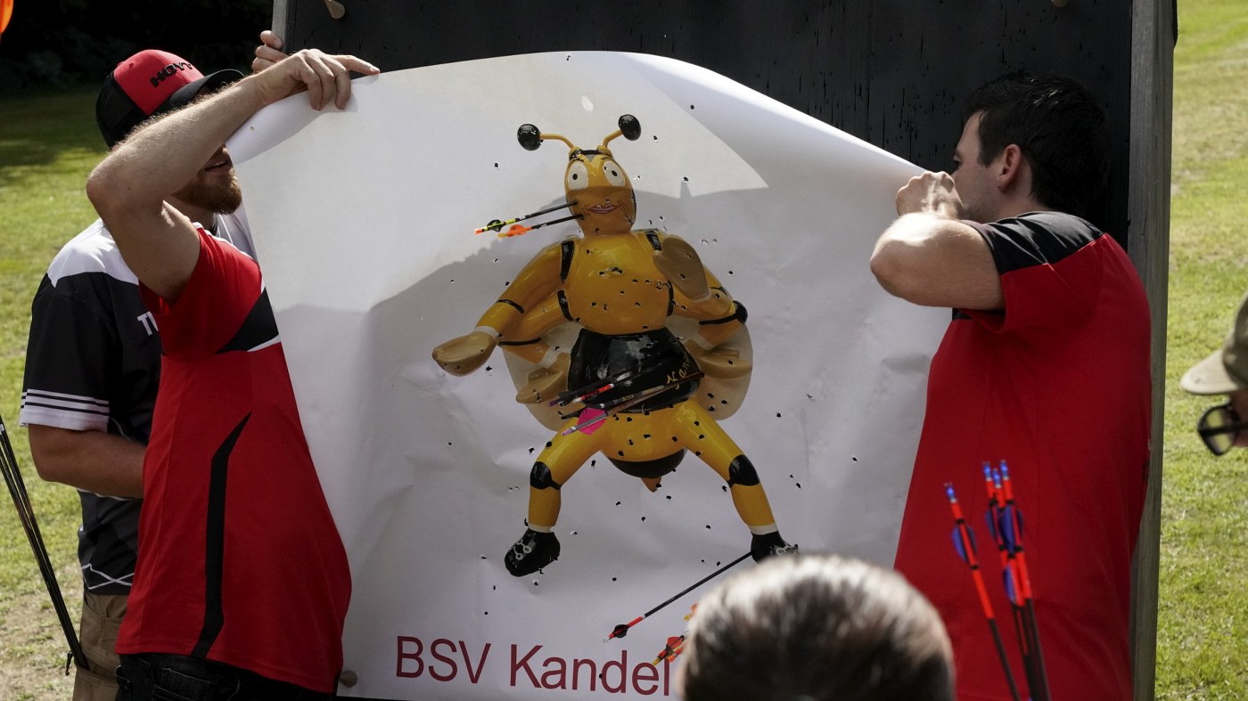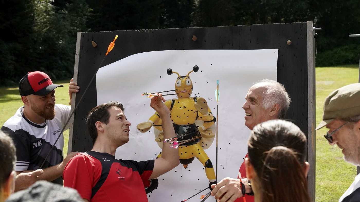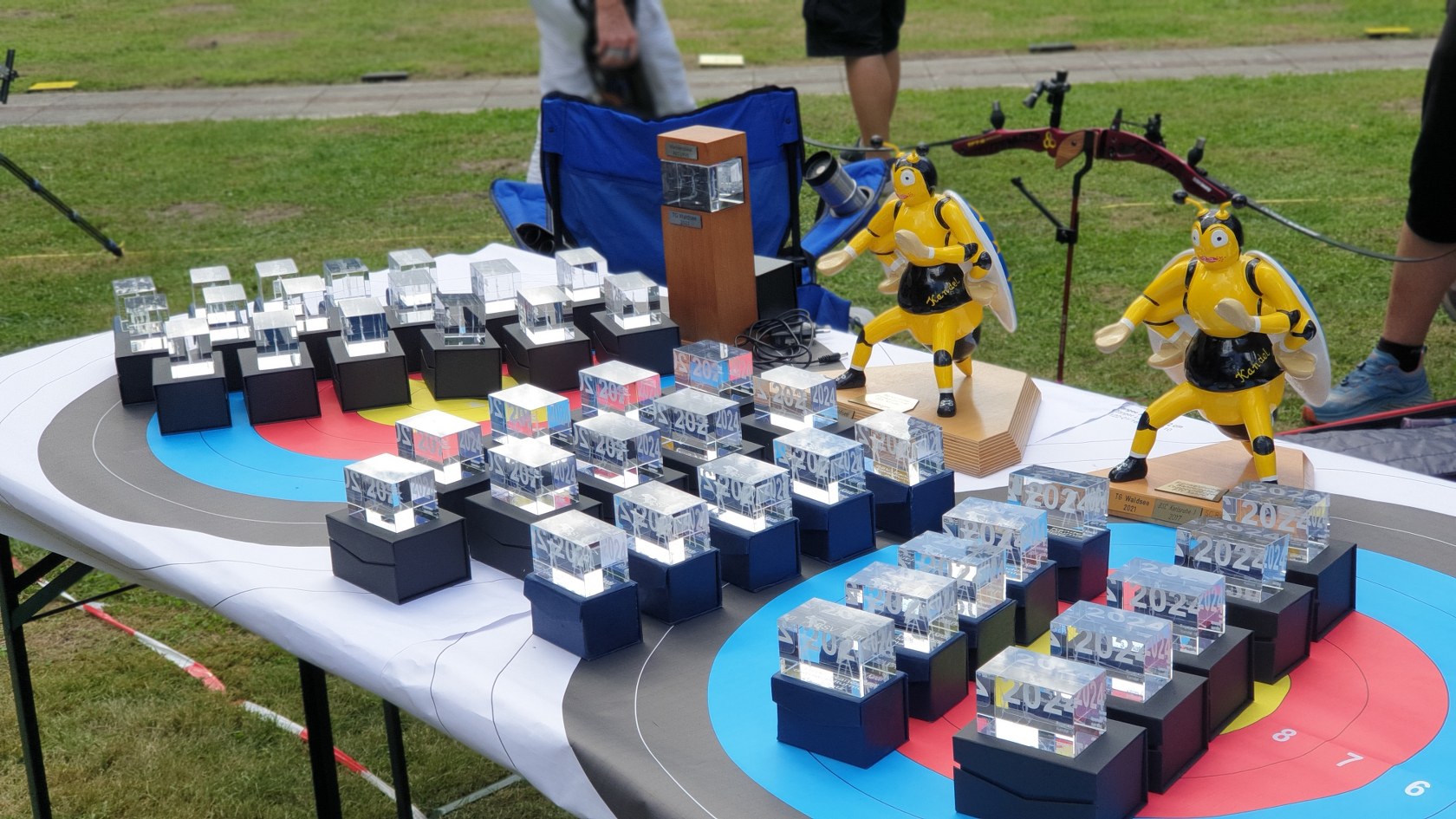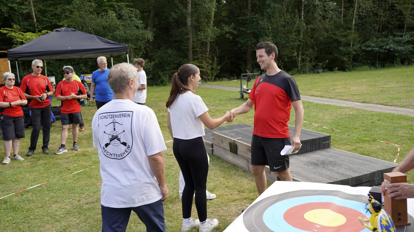 Besonders großer Beliebtheit erfreut sich unser Glücksschuss, der immer nach dem Wettkampf durchgeführt wird. Die Schützinnen und Schützen schießen hierzu Pfeile auf unsere Bienwald-Biene. Wer dabei am nächsten an eine geheim markierte Stelle trifft, gewinnt einen riesigen Präsentkorb. Die Spannung, wer am Ende das meiste Glück hat, war vorprogrammiert.