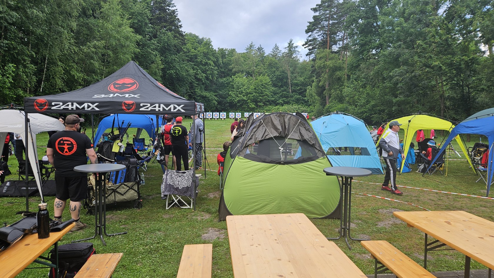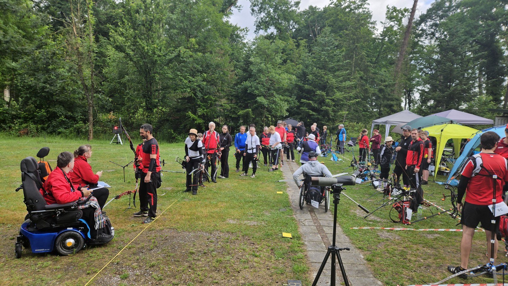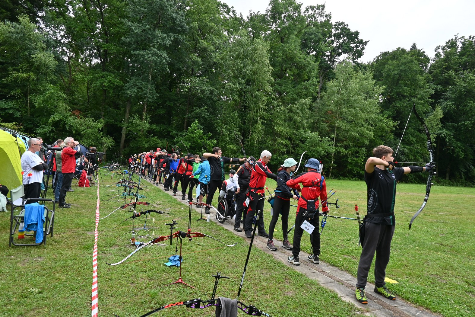 Rund 60 Schützinnen und Schützen aus ganz Rheinland-Pfalz, sowie einige Gastschützen aus anderen Landesverbänden gingen bei ungemütlichem Wetter an den Start. Das Wetter war nicht ganz perfekt, besonders der böige Wind und einige Regenschauer machten den Bogenschützen zu schaffen und kosteten den ein oder anderen Ring.