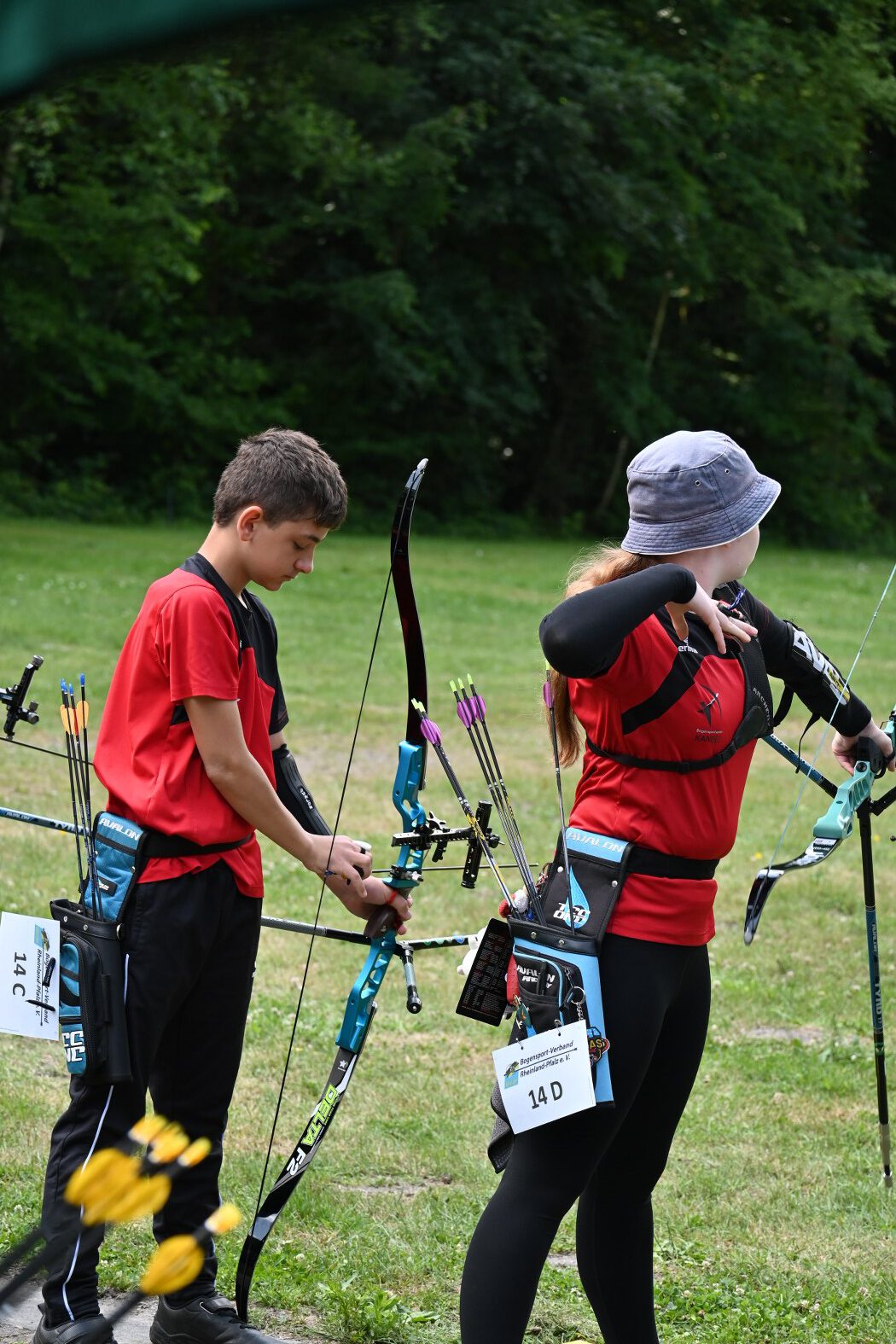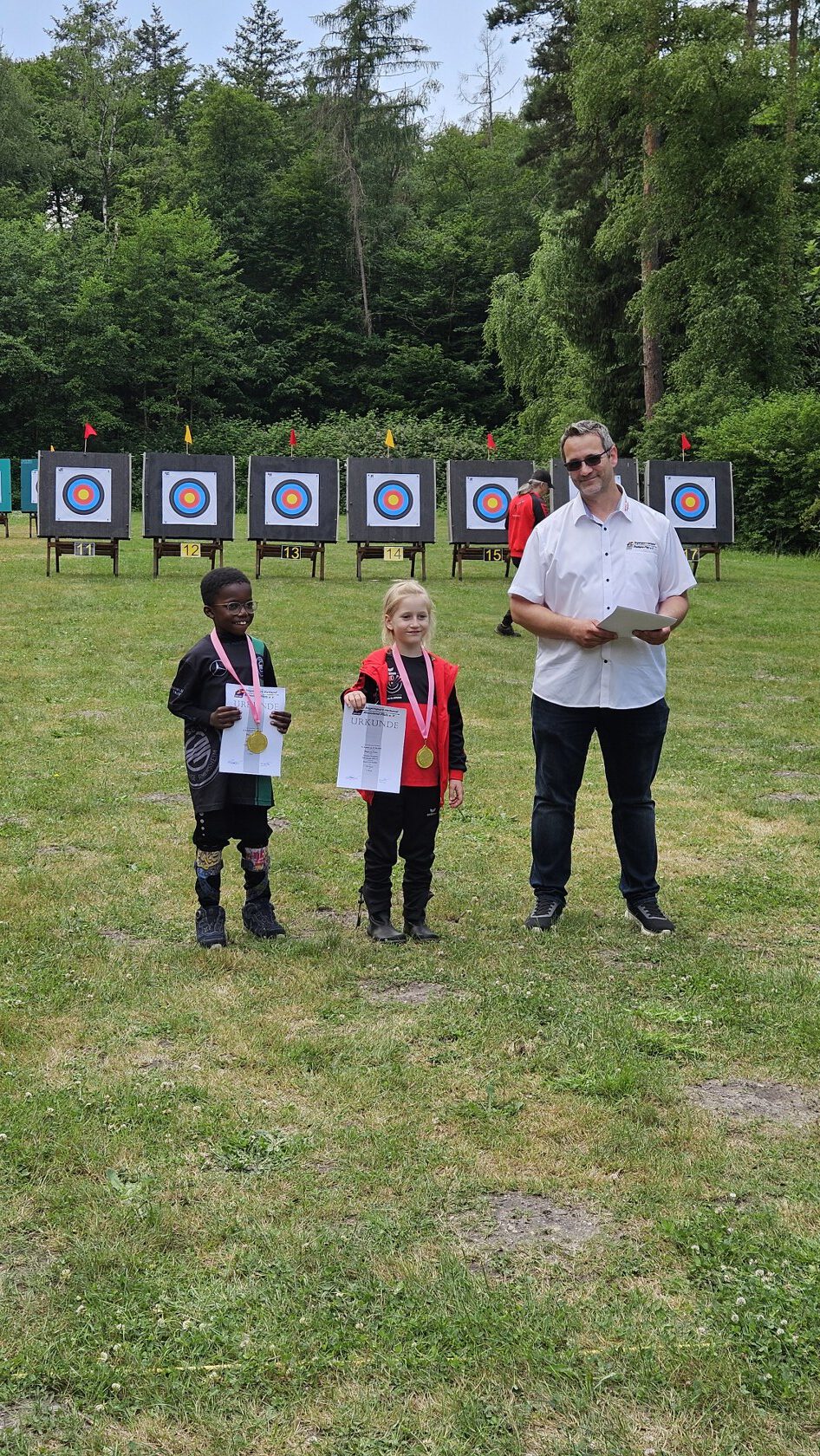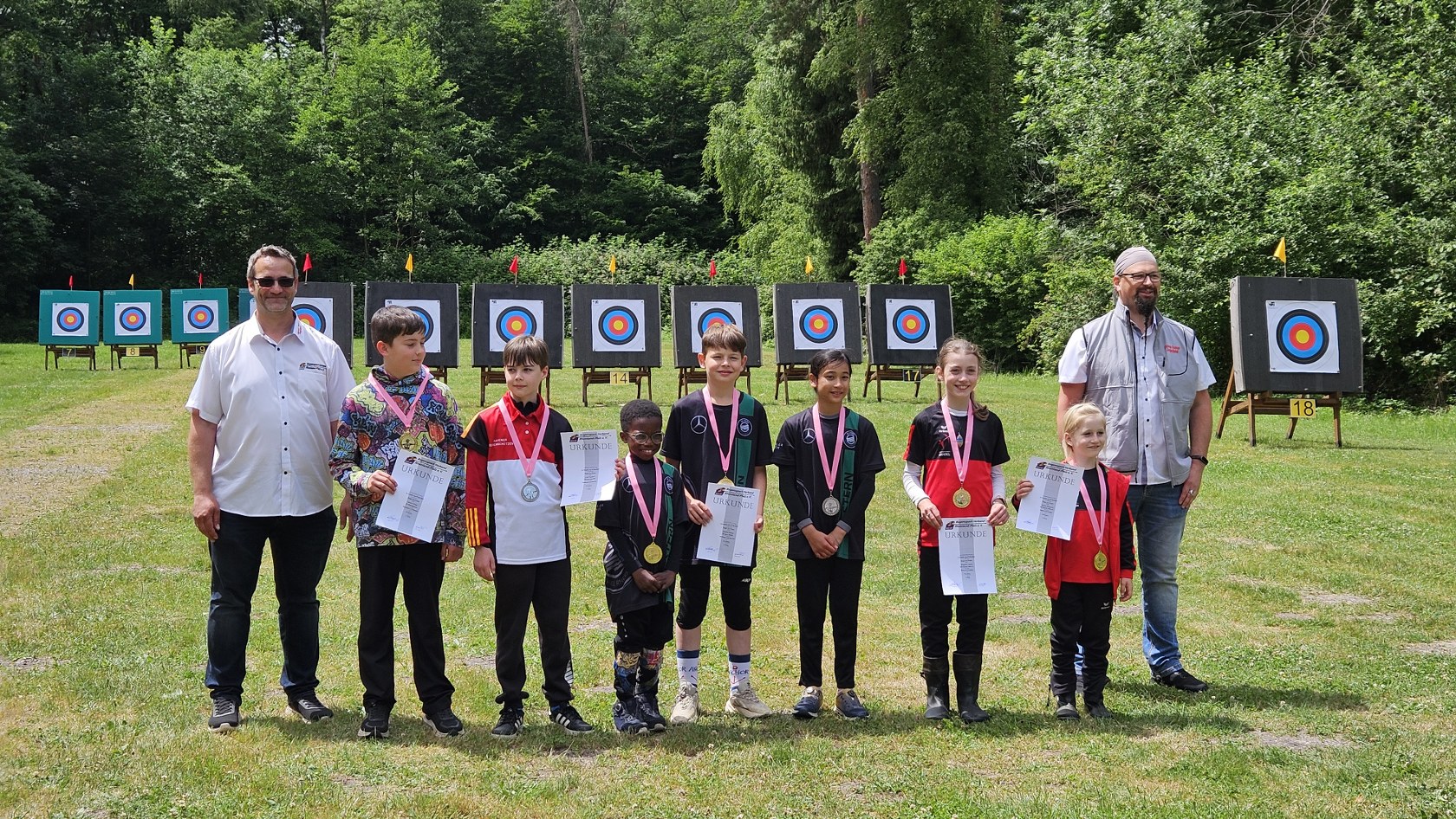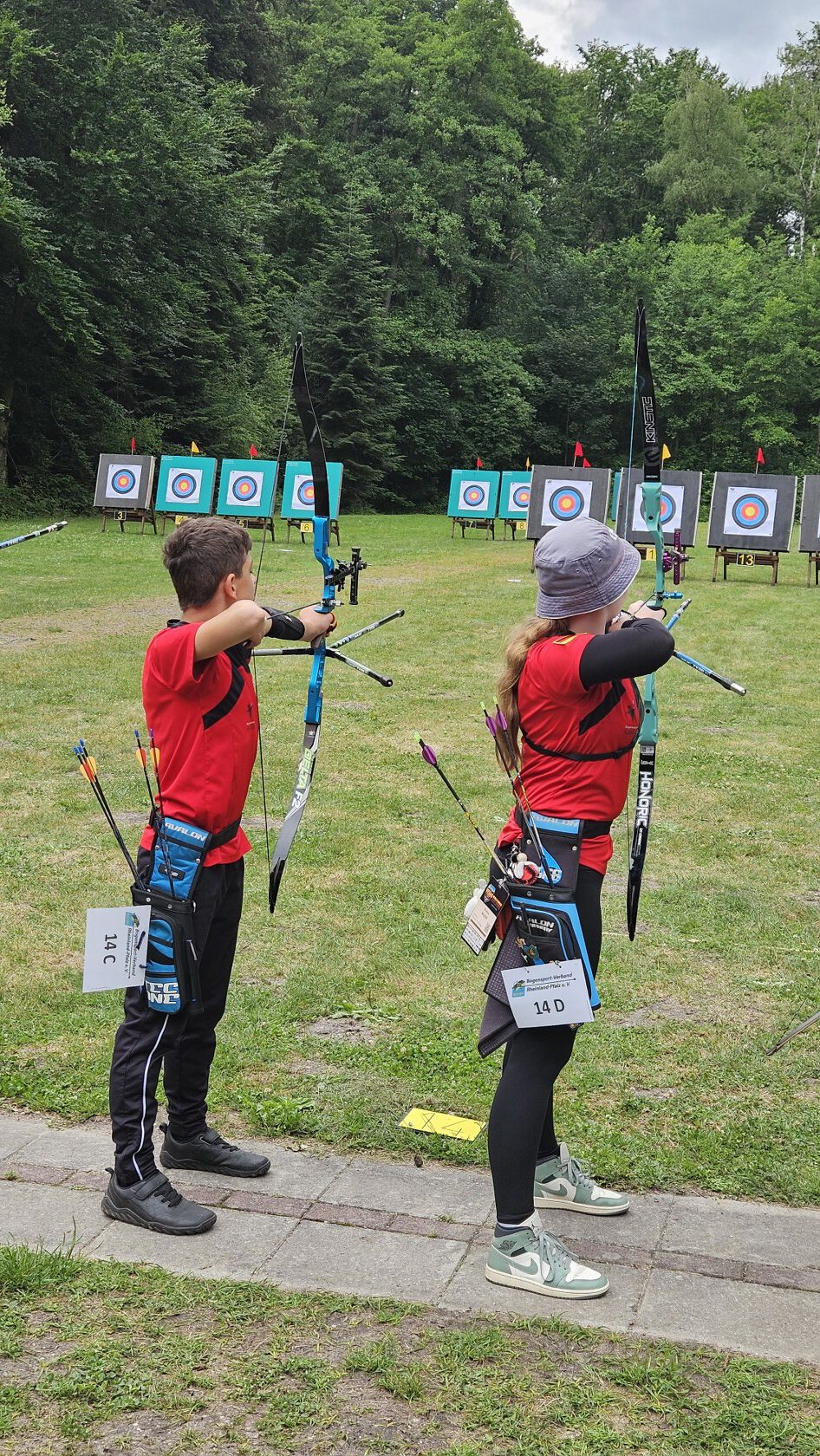 Beim Bogensportverband werden im Freien 4 mal 36 Pfeile, also insgesamt 144 Pfeile, auf vier unterschiedliche Entfernungen geschossen. Maximal möglich waren daher 1440 Ringe. Je nach Altersklasse sind dabei Entfernungen von 20 bis 90 Meter zu meistern. Dies bedeutete einen sehr langen Tag für die Schützen, der von morgens 7:30 Uhr bis abends 17 Uhr dauerte, bis der letzte Pfeil geschossen war.