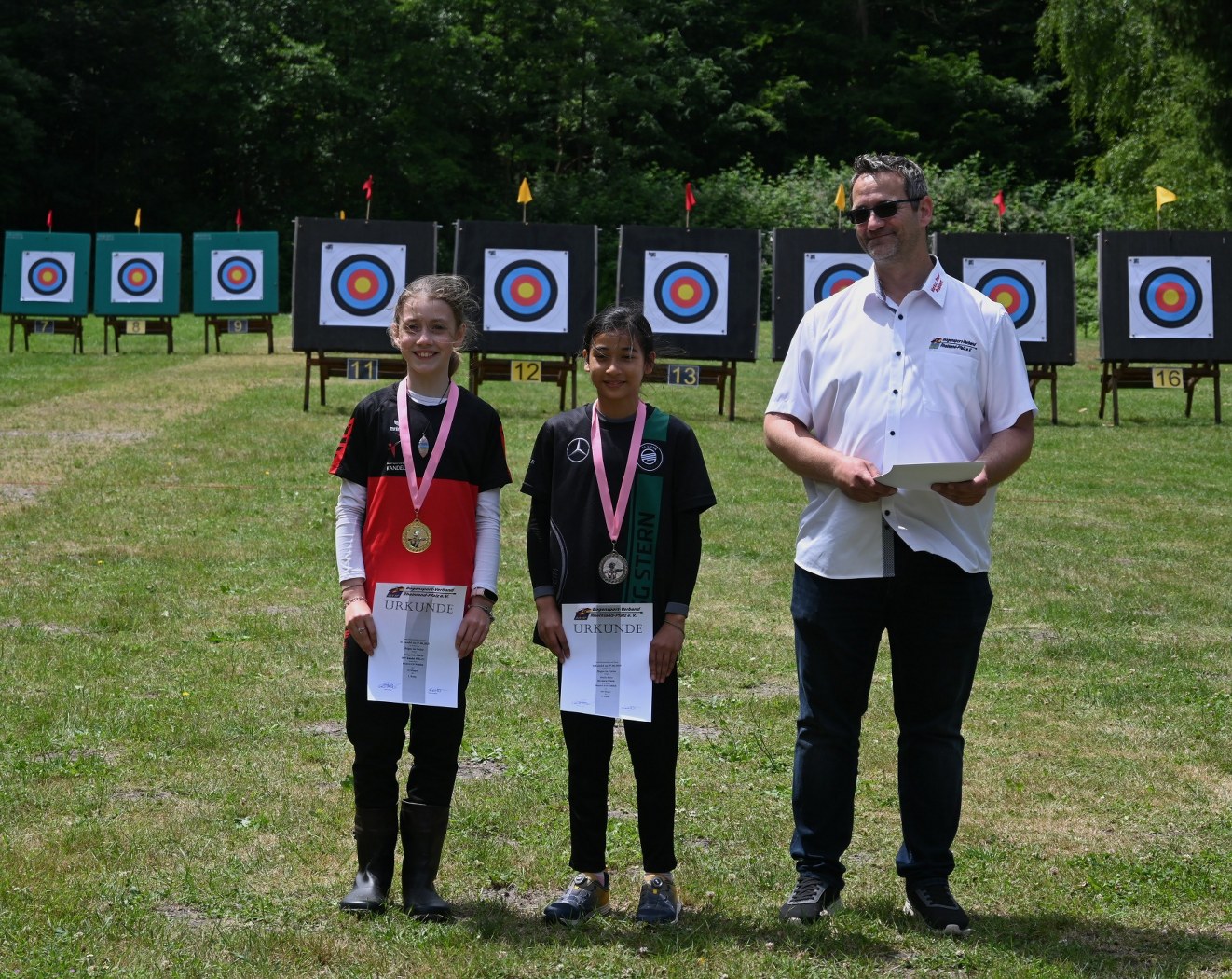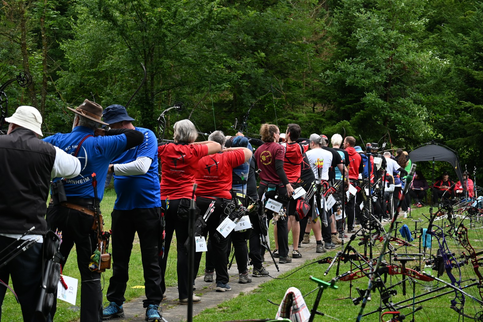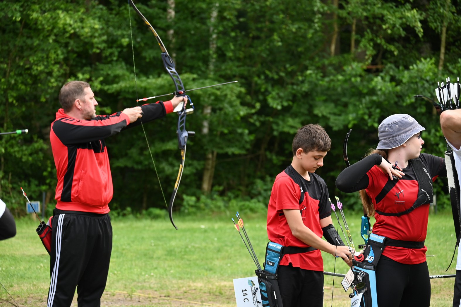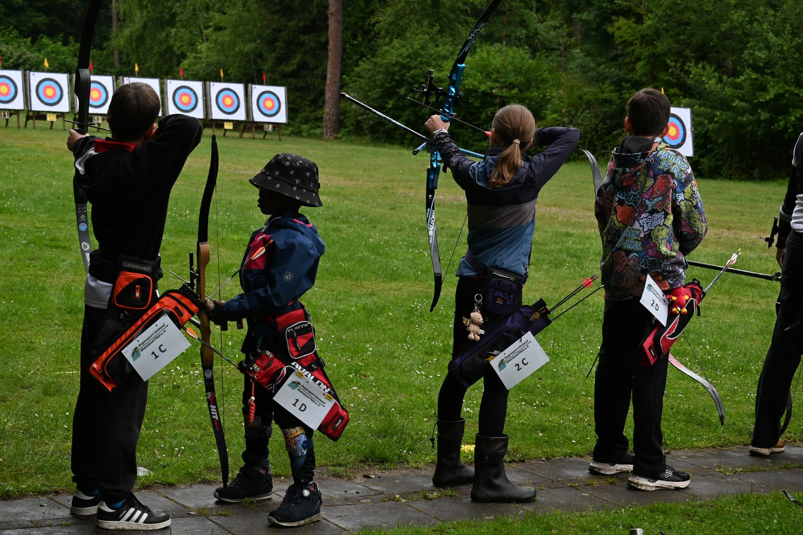 Beim Bogensportverband werden im Freien 4 mal 36 Pfeile, also insgesamt 144 Pfeile, auf vier unterschiedliche Entfernungen geschossen. Maximal möglich waren daher 1440 Ringe. Je nach Altersklasse sind dabei Entfernungen von 20 bis 90 Meter zu meistern. Dies bedeutete einen sehr langen Tag für die Schützen, der von morgens 7:30 Uhr bis abends 17 Uhr dauerte, bis der letzte Pfeil geschossen war.