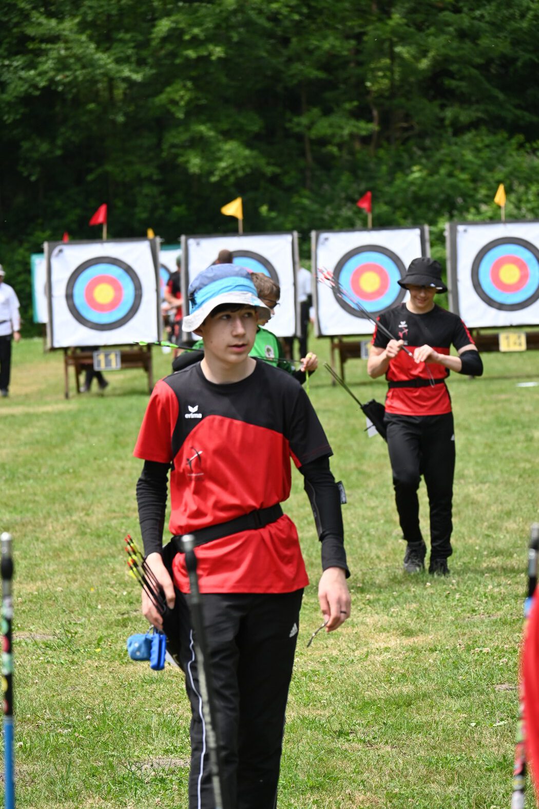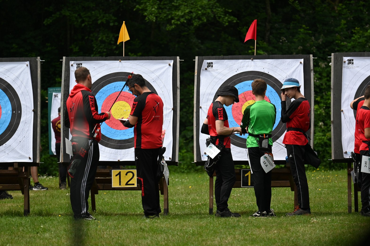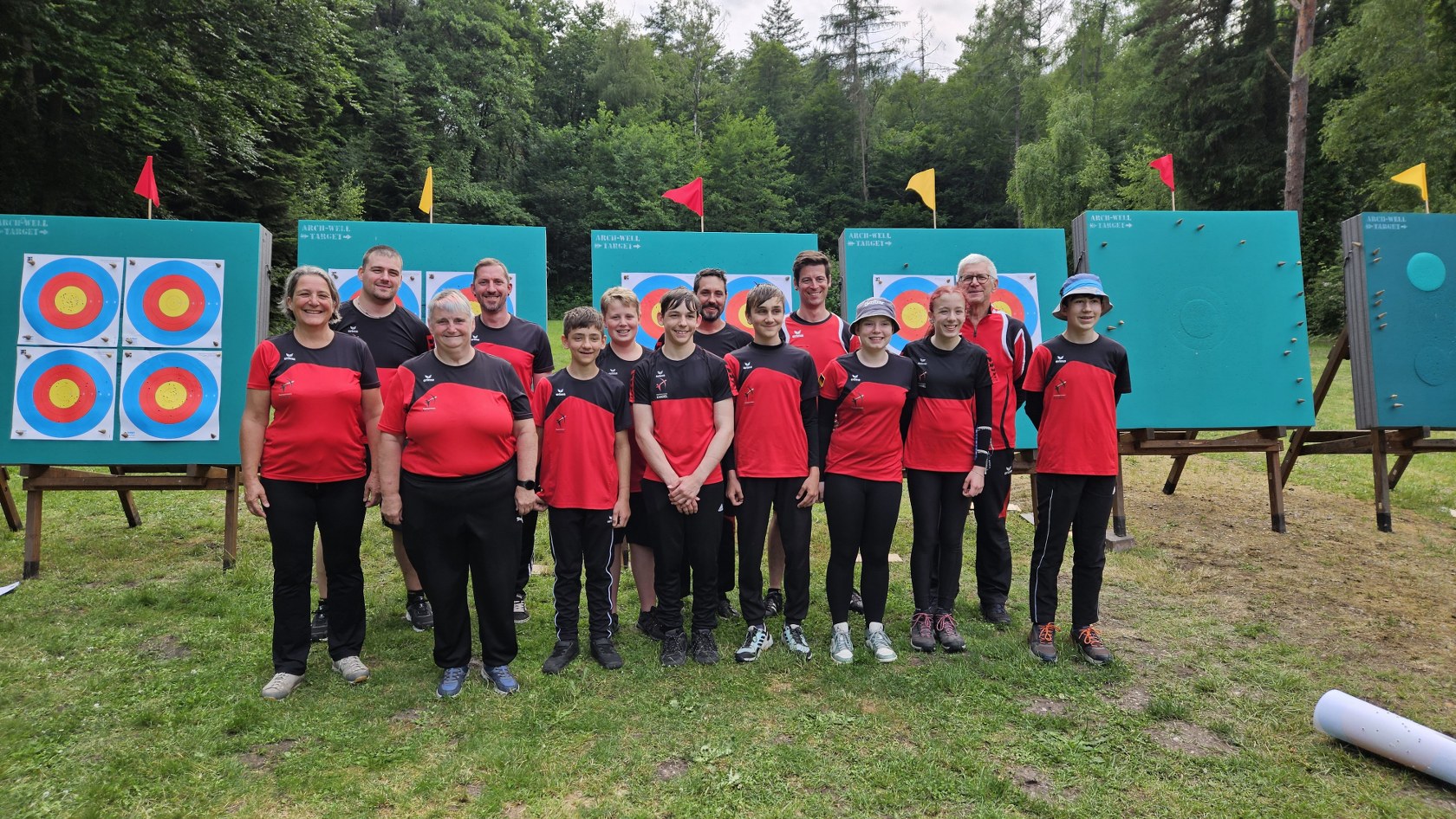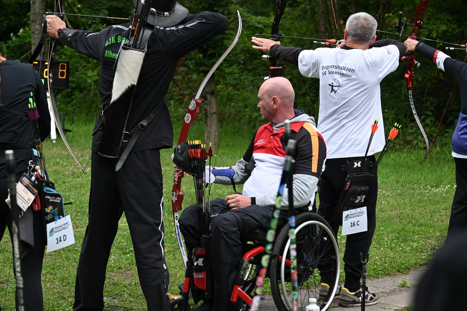 Beim Bogensportverband werden im Freien 4 mal 36 Pfeile, also insgesamt 144 Pfeile, auf vier unterschiedliche Entfernungen geschossen. Maximal möglich waren daher 1440 Ringe. Je nach Altersklasse sind dabei Entfernungen von 20 bis 90 Meter zu meistern. Dies bedeutete einen sehr langen Tag für die Schützen, der von morgens 7:30 Uhr bis abends 17 Uhr dauerte, bis der letzte Pfeil geschossen war.