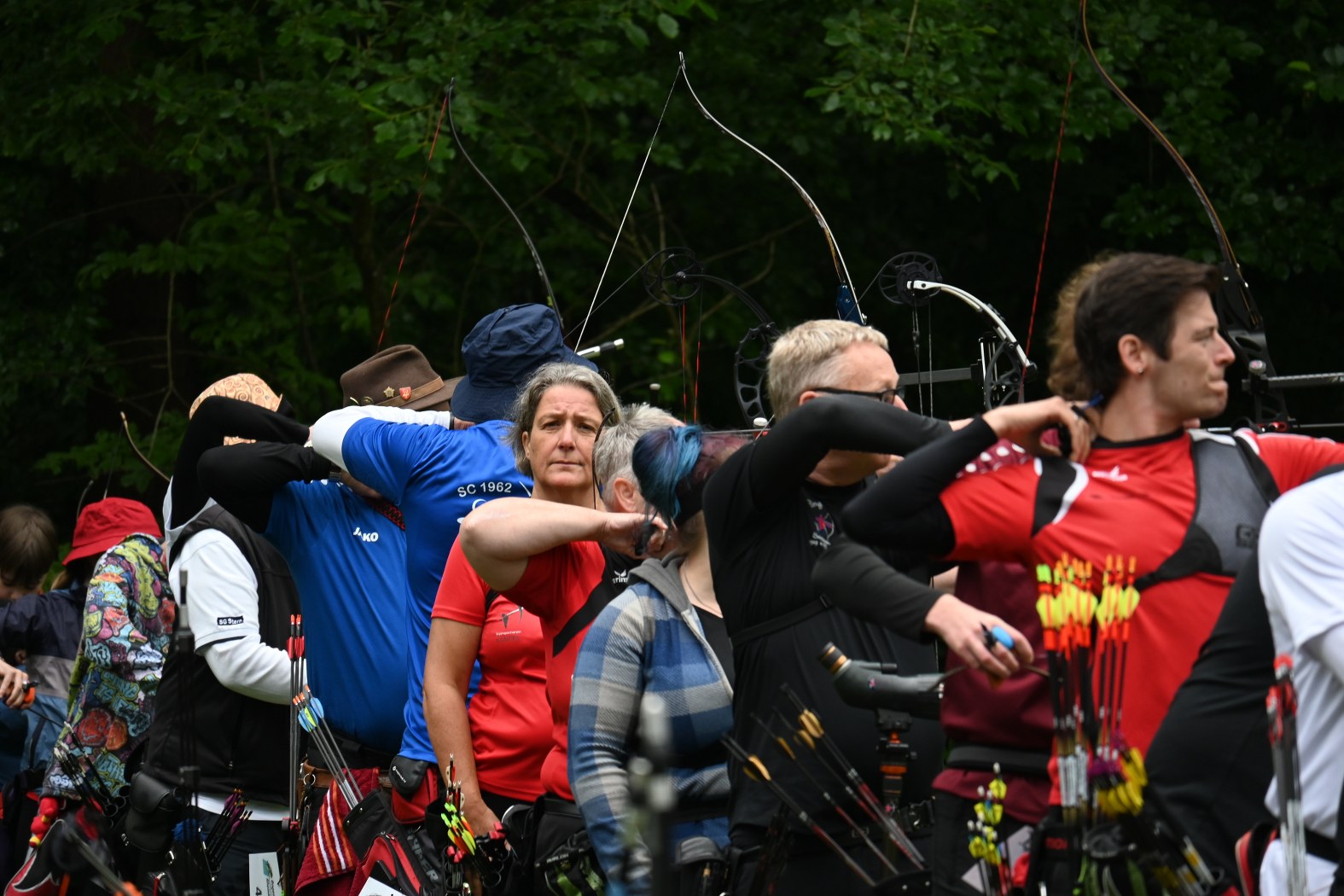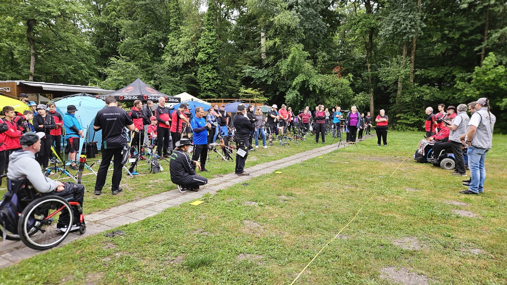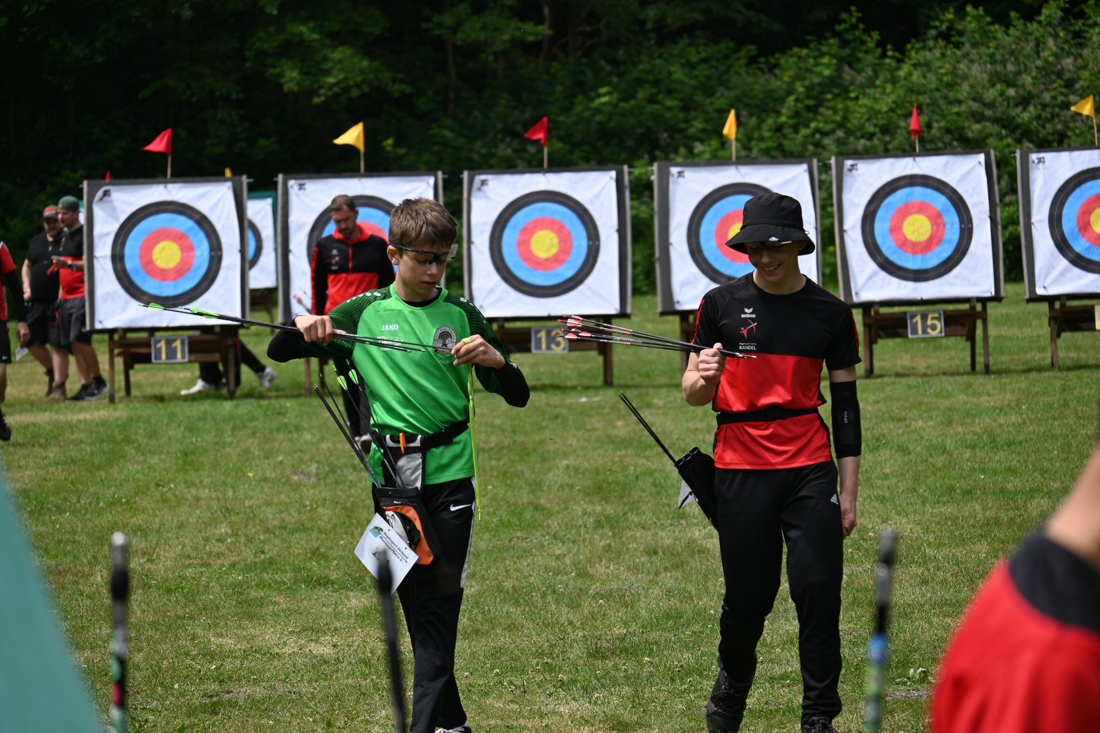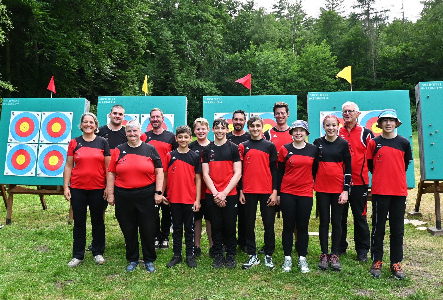 Beim Bogensportverband werden im Freien 4 mal 36 Pfeile, also insgesamt 144 Pfeile, auf vier unterschiedliche Entfernungen geschossen. Maximal möglich waren daher 1440 Ringe. Je nach Altersklasse sind dabei Entfernungen von 20 bis 90 Meter zu meistern. Dies bedeutete einen sehr langen Tag für die Schützen, der von morgens 7:30 Uhr bis abends 17 Uhr dauerte, bis der letzte Pfeil geschossen war.