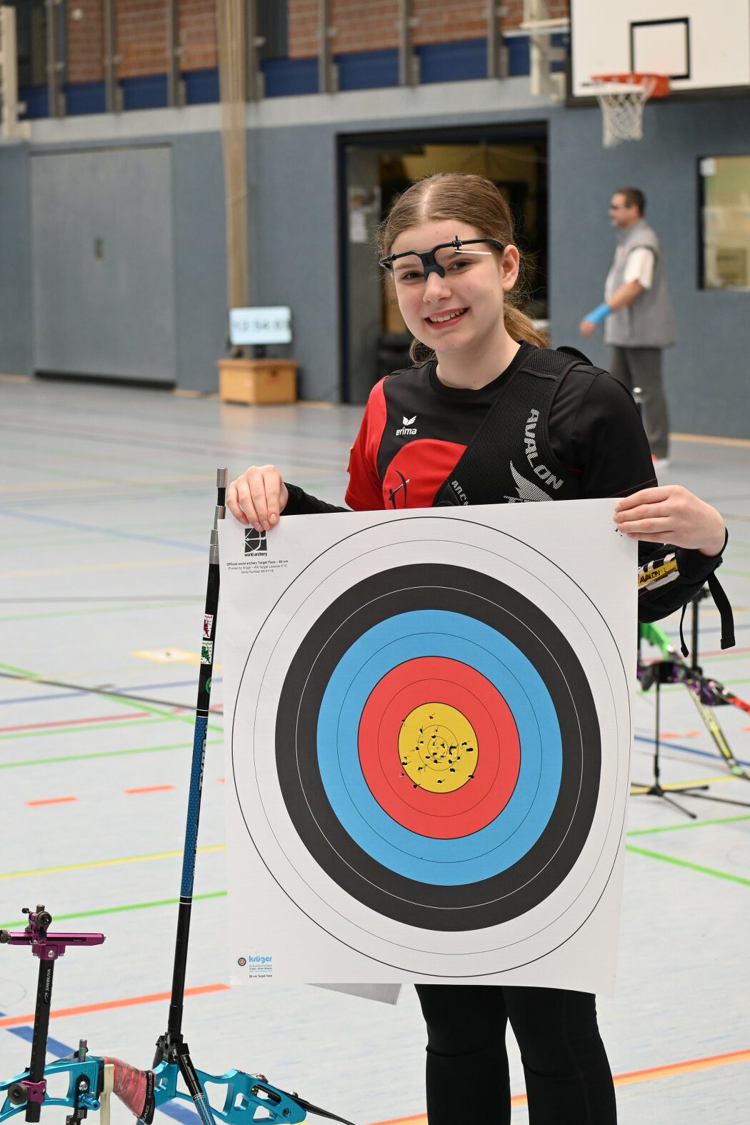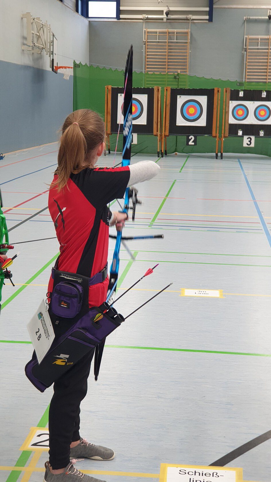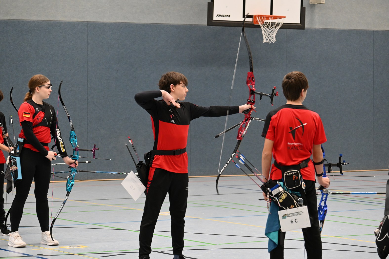 Mit dem Recurvebogen holten wir 2 Landesmeistertitel (Ronna Weber, Elian Strittmatter), einen 2. Platz (Amelie Weisgerber) und einen 3. Platz (Felix Schneider), sowie mit unseren Jugendmannschaften den 1. und 2. Platz in der Recurve Klasse. Zudem schossen unsere Jugendliche alle mehr als 400 Ringe – eine sehr starke Mannschaftsleistung.