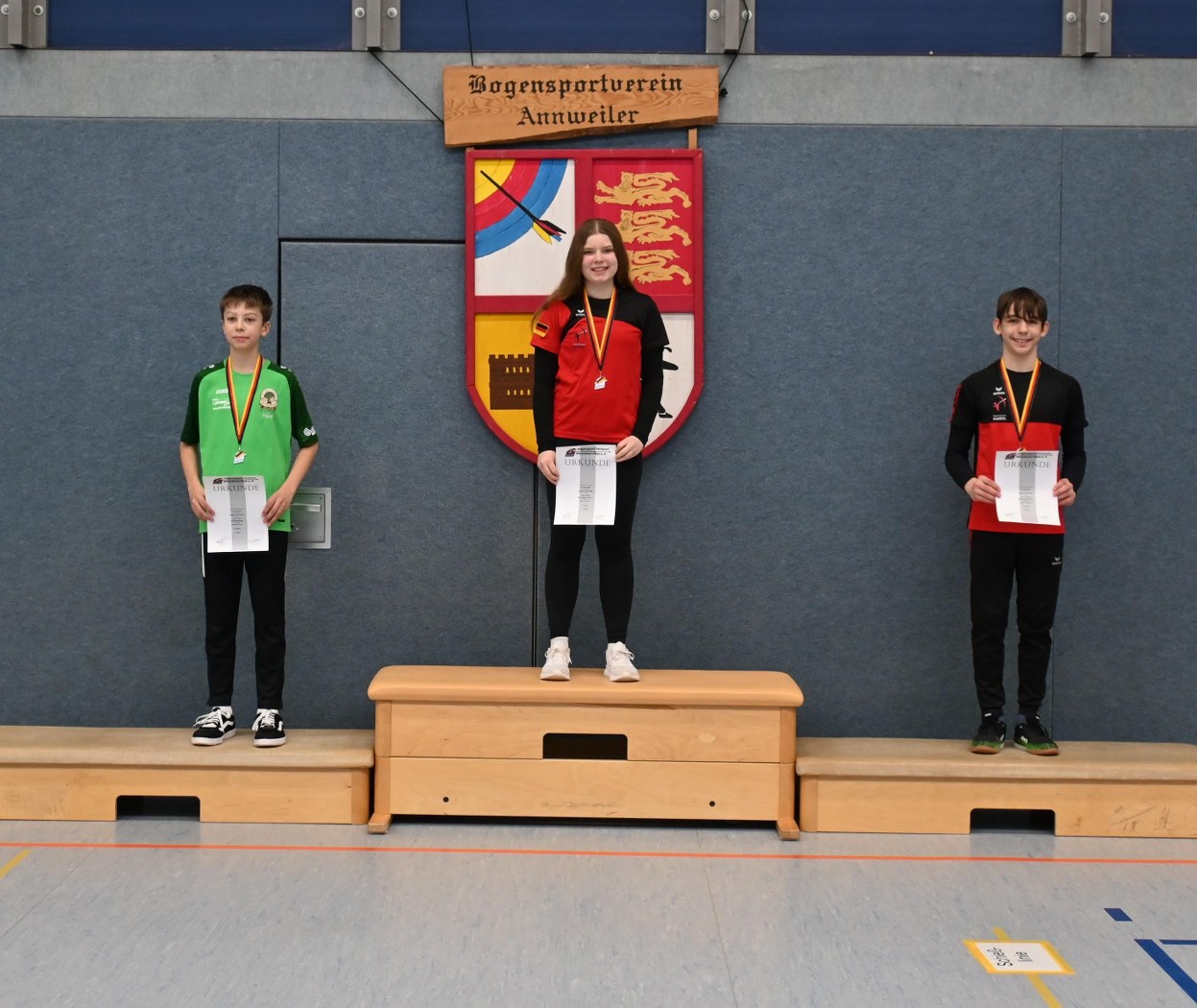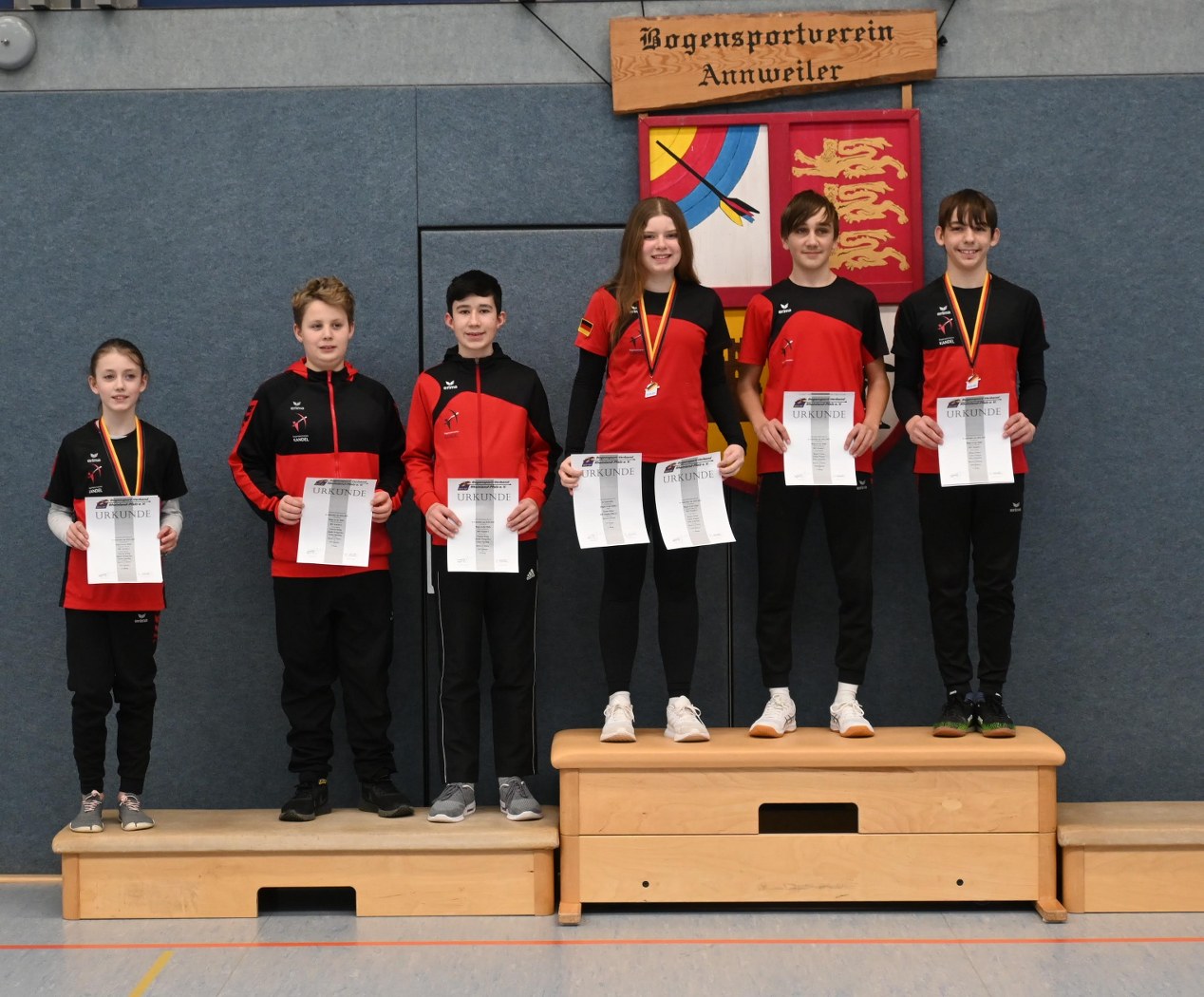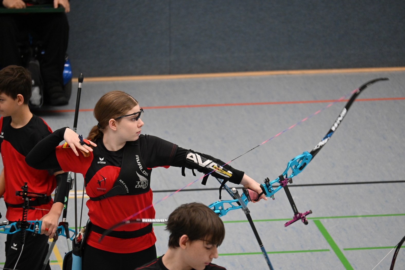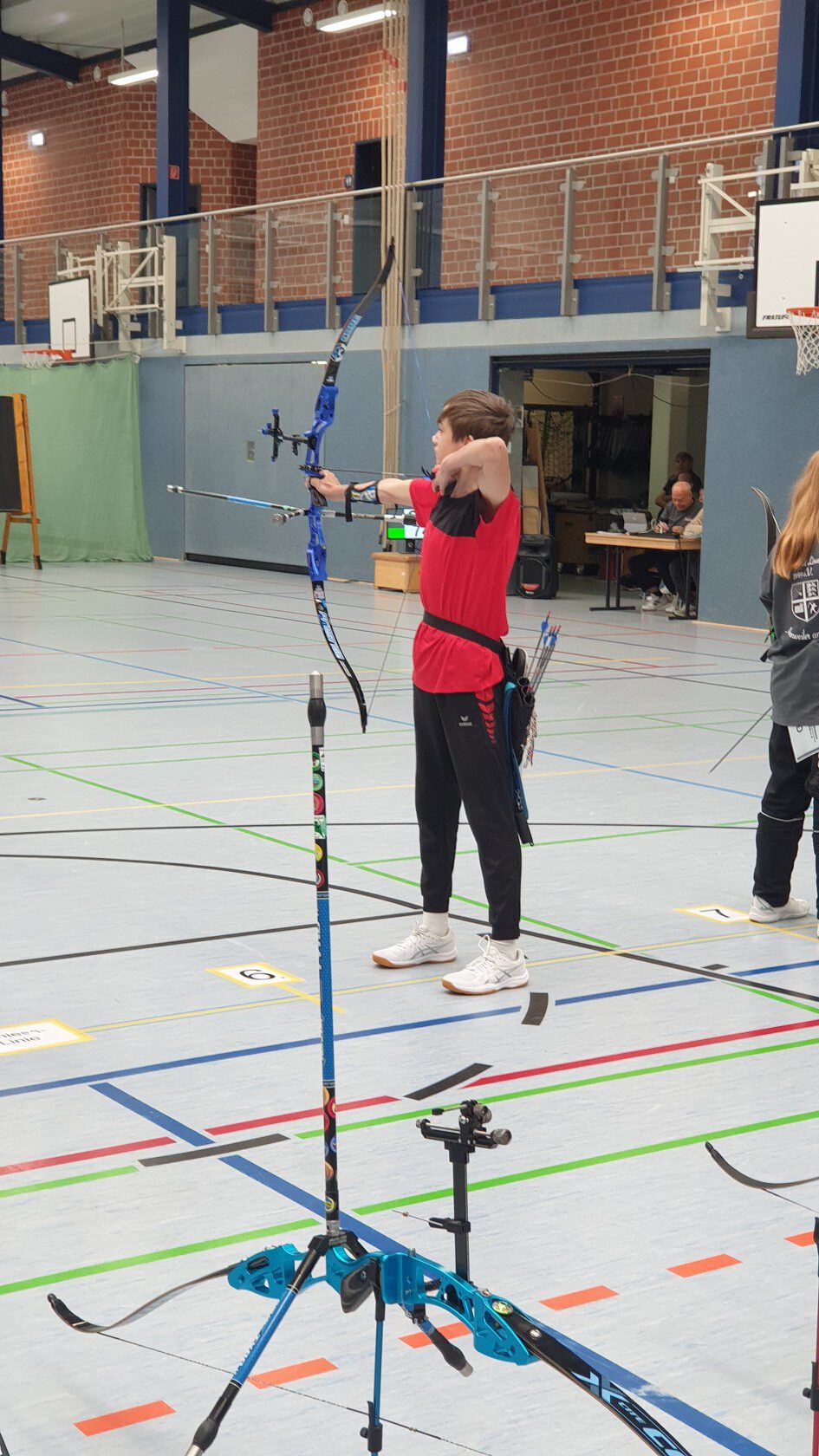 Mit dem Recurvebogen holten wir 2 Landesmeistertitel (Ronna Weber, Elian Strittmatter), einen 2. Platz (Amelie Weisgerber) und einen 3. Platz (Felix Schneider), sowie mit unseren Jugendmannschaften den 1. und 2. Platz in der Recurve Klasse. Zudem schossen unsere Jugendliche alle mehr als 400 Ringe – eine sehr starke Mannschaftsleistung.