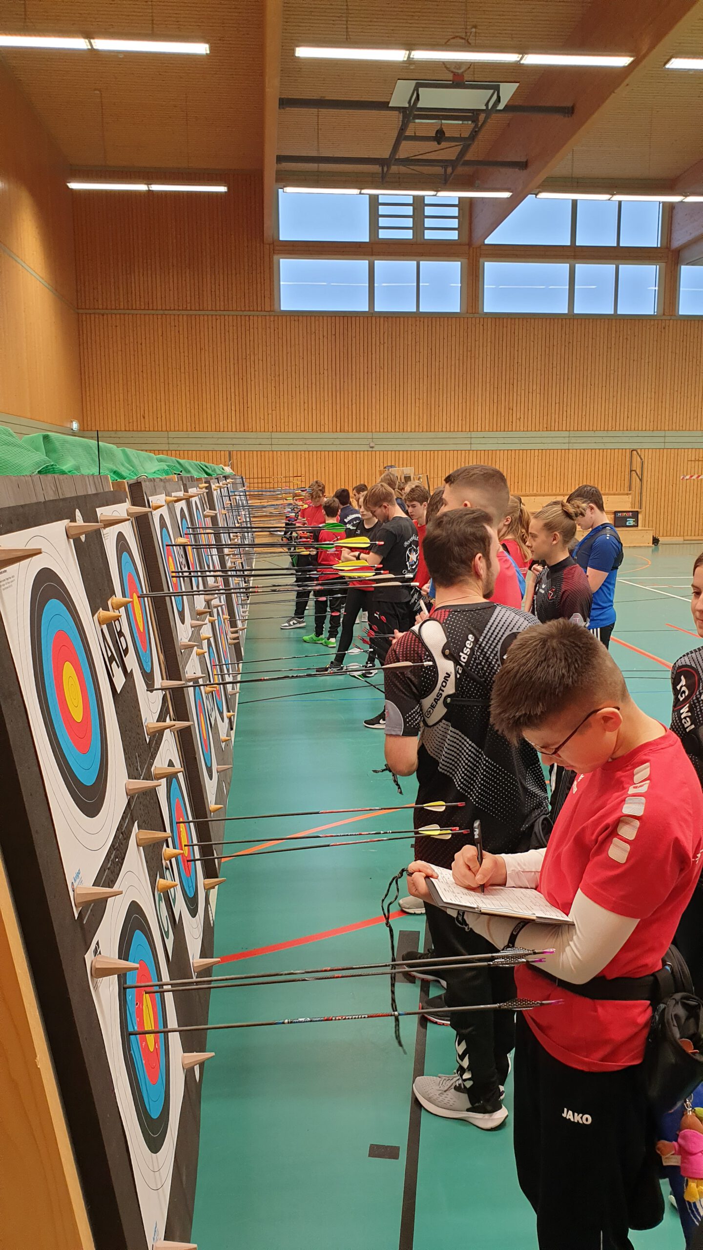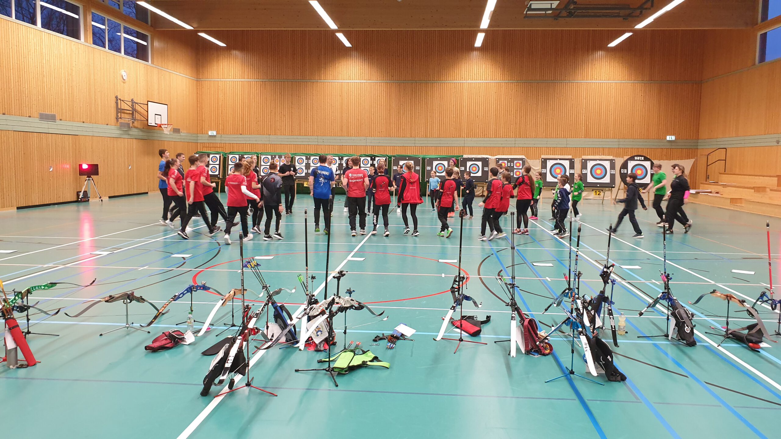 An der Jugendrunde dürfen Schützinnen und Schützen bis zum Alter von 16 Jahren aus ganz Rheinland-Pfalz teilnehmen. Die Teilnehmerzahl in diesem Winter war ein Rekord. Bisher hatten noch nie so viele Jugendliche an der Jugendrunde teilgenommen. Zu den Bogenschützen kamen natürlich noch viele Trainer, Betreuer, Familien und Helfer, sodass die Halle mit rund 150 Personen rappelvoll war. Geschossen wurde in zwei Gruppen am Vor- und Nachmittag. 60 Pfeile mussten auf die, je nach Altersklasse, unterschiedlichen Auflagen platziert werden.