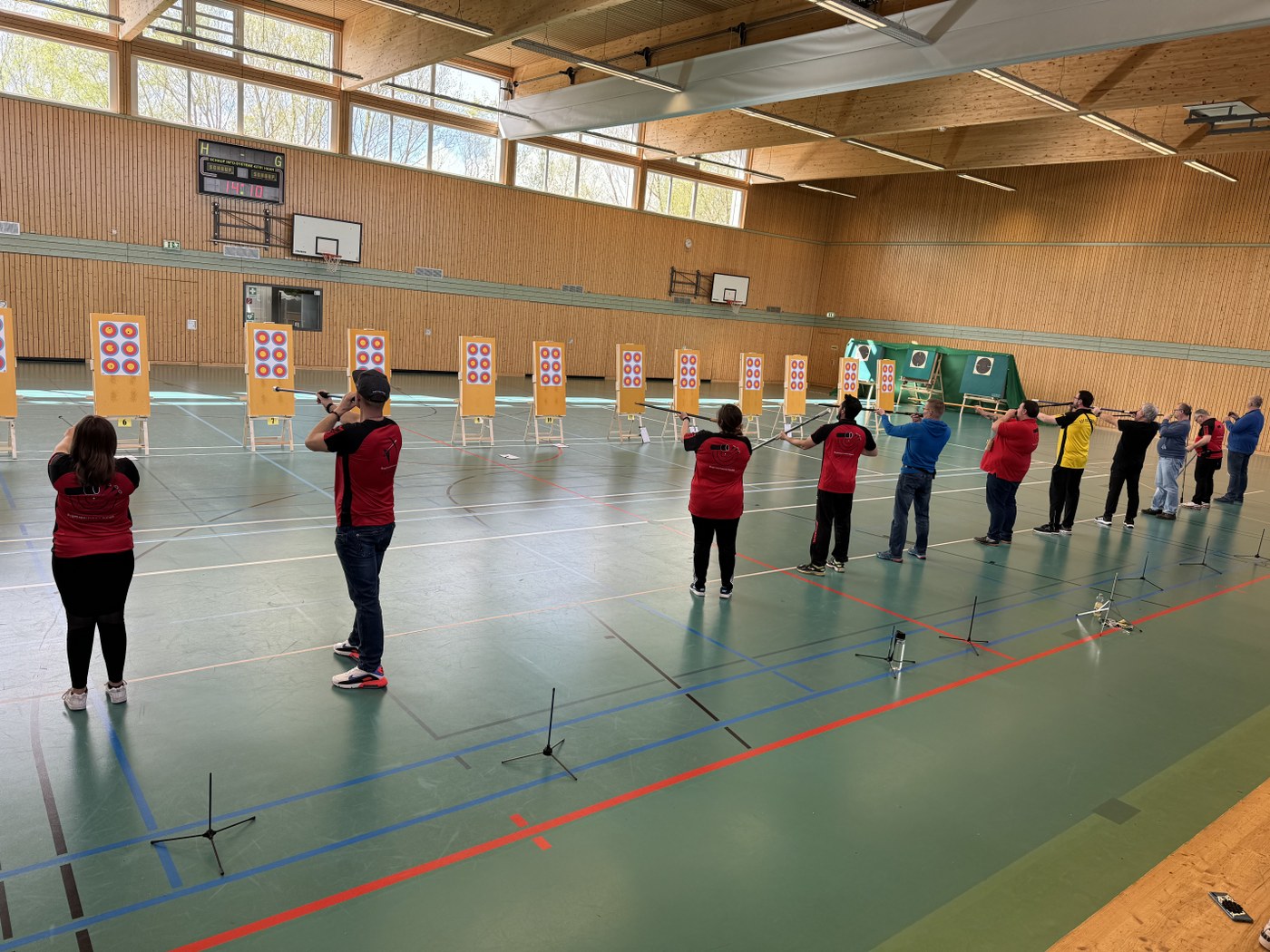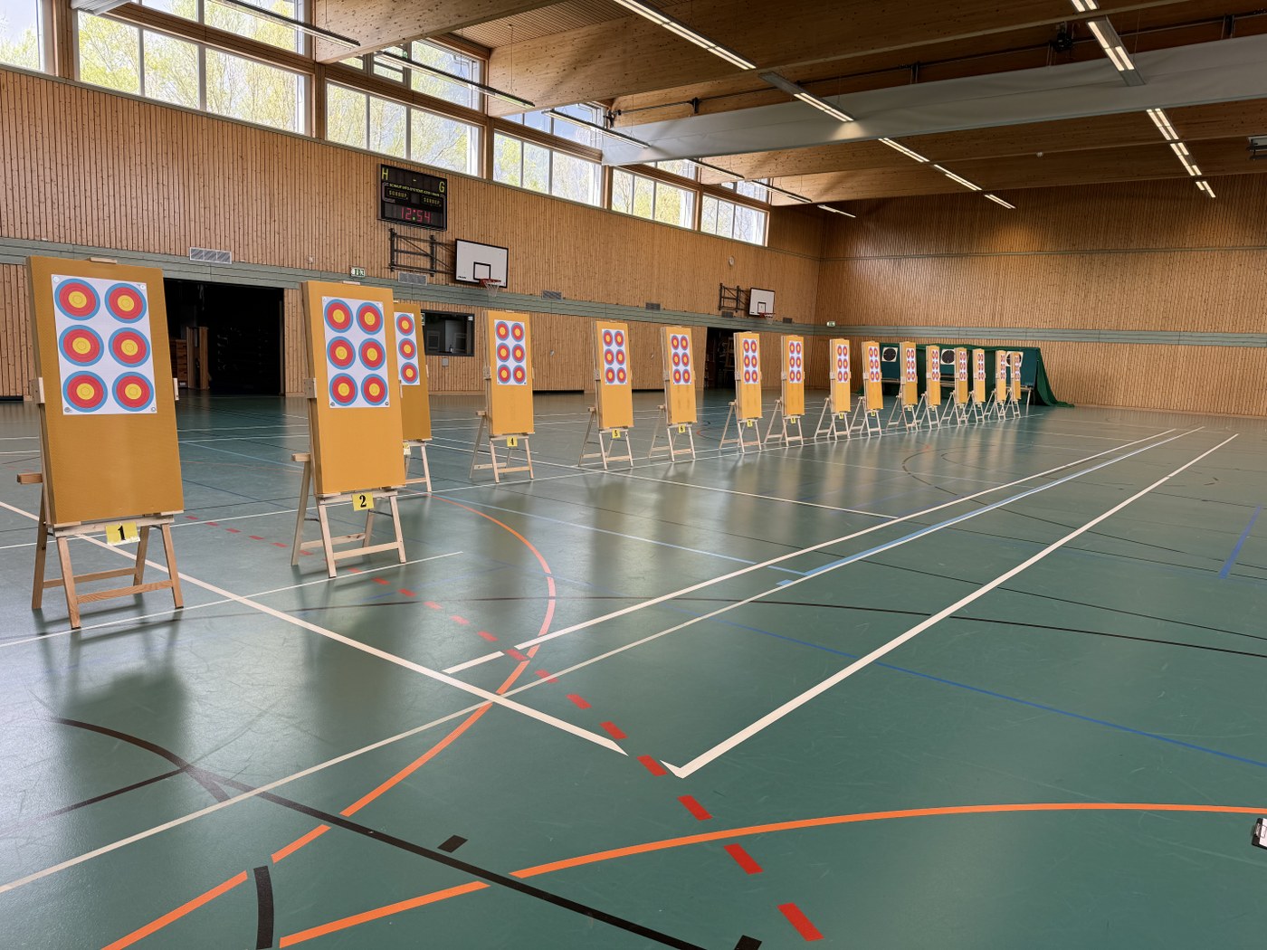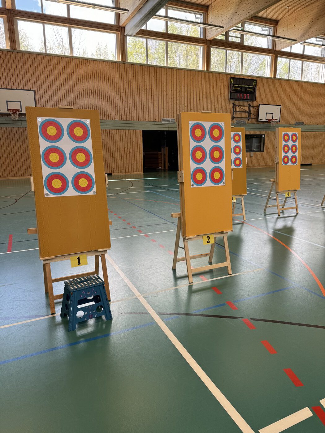 geschossen werden hier 15 Pfeile auf 25 Meter.