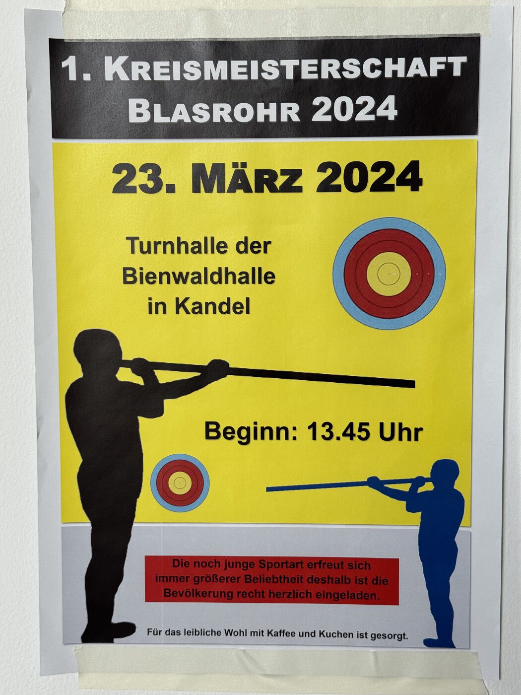 Am 23.03.24 fand in der Bienwaldhalle Kandel die erste Kreismeisterschaft im Blasrohrschießen statt.