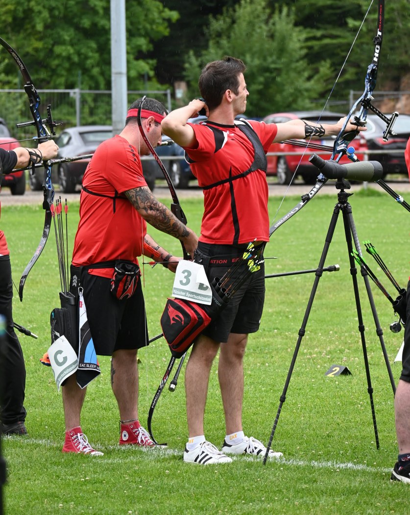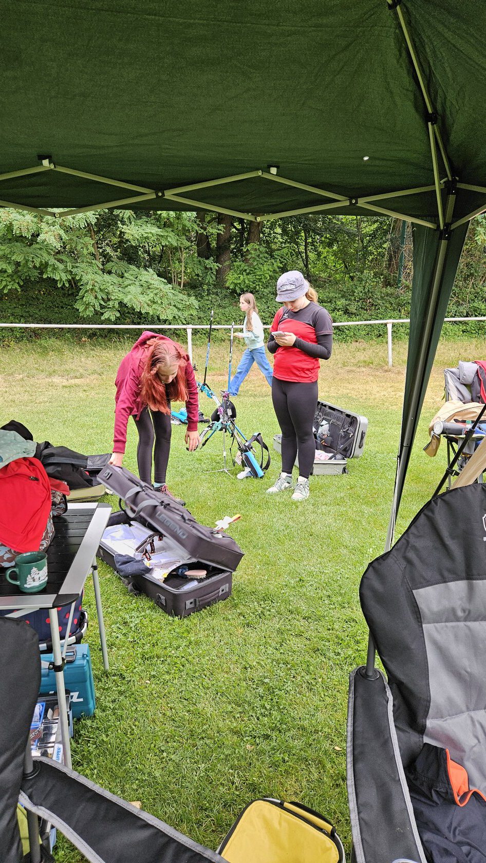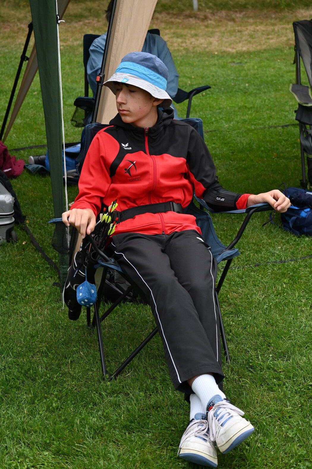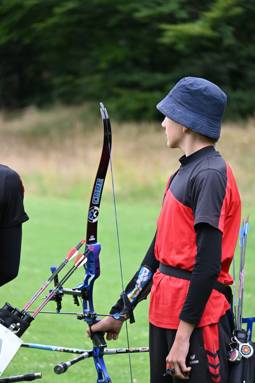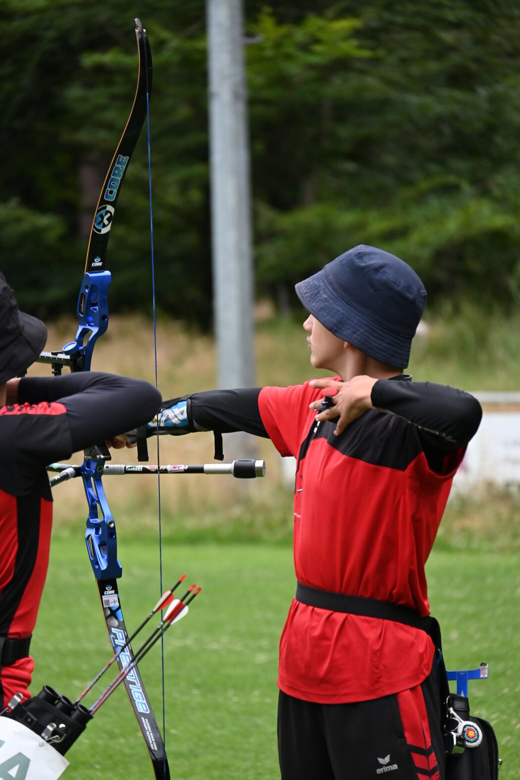 Sonntags waren dann die Recurveschützen an der Reihe. Statt des sonnigen Wetters des Vortags war heute Regen und Wind angesagt. Keine einfachen Bedingungen für die Teilnehmer.