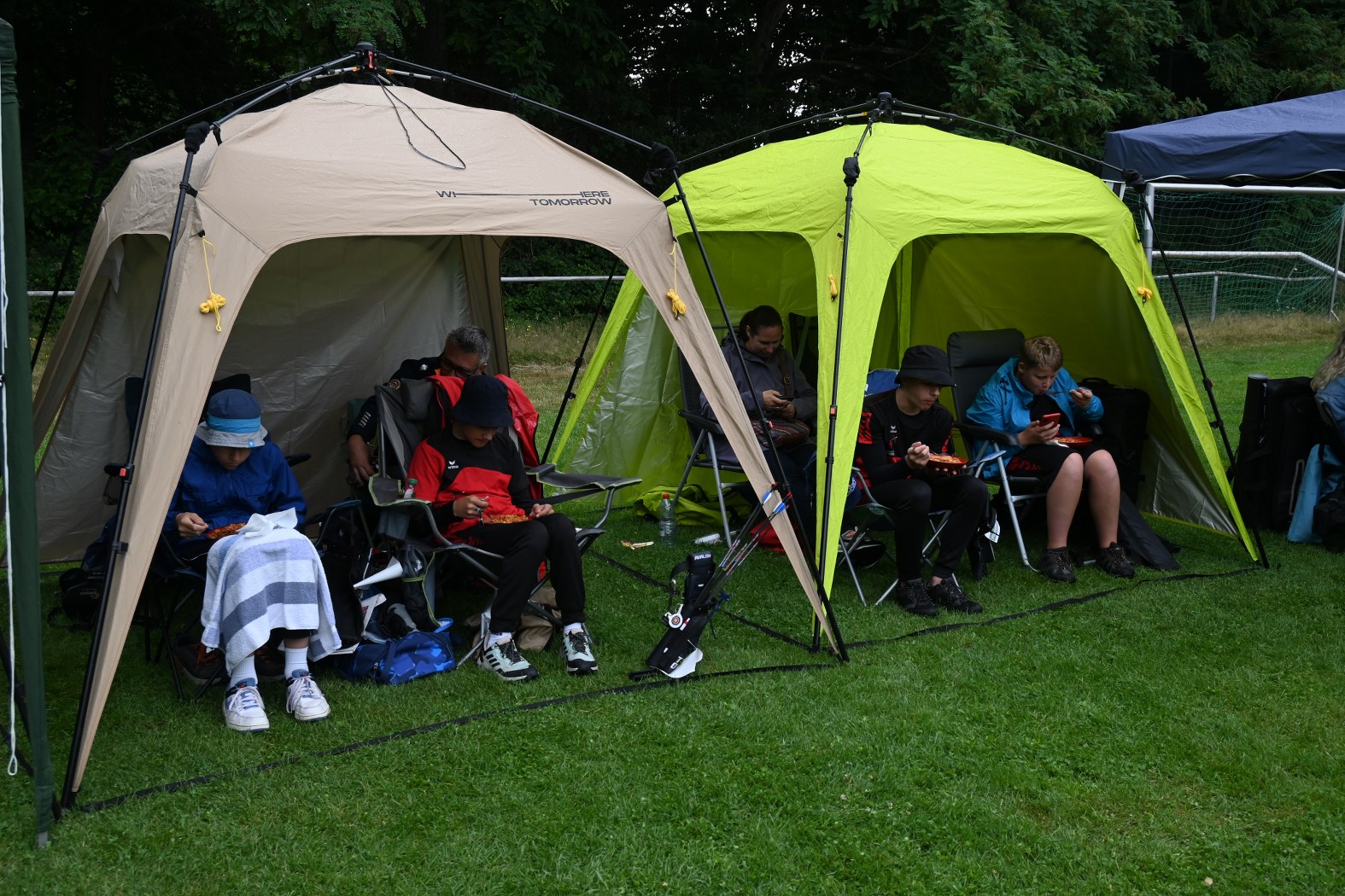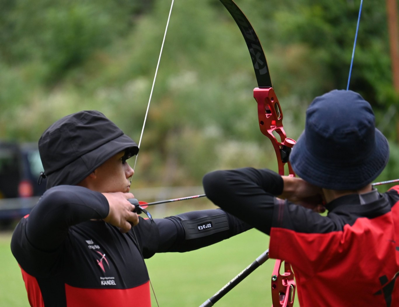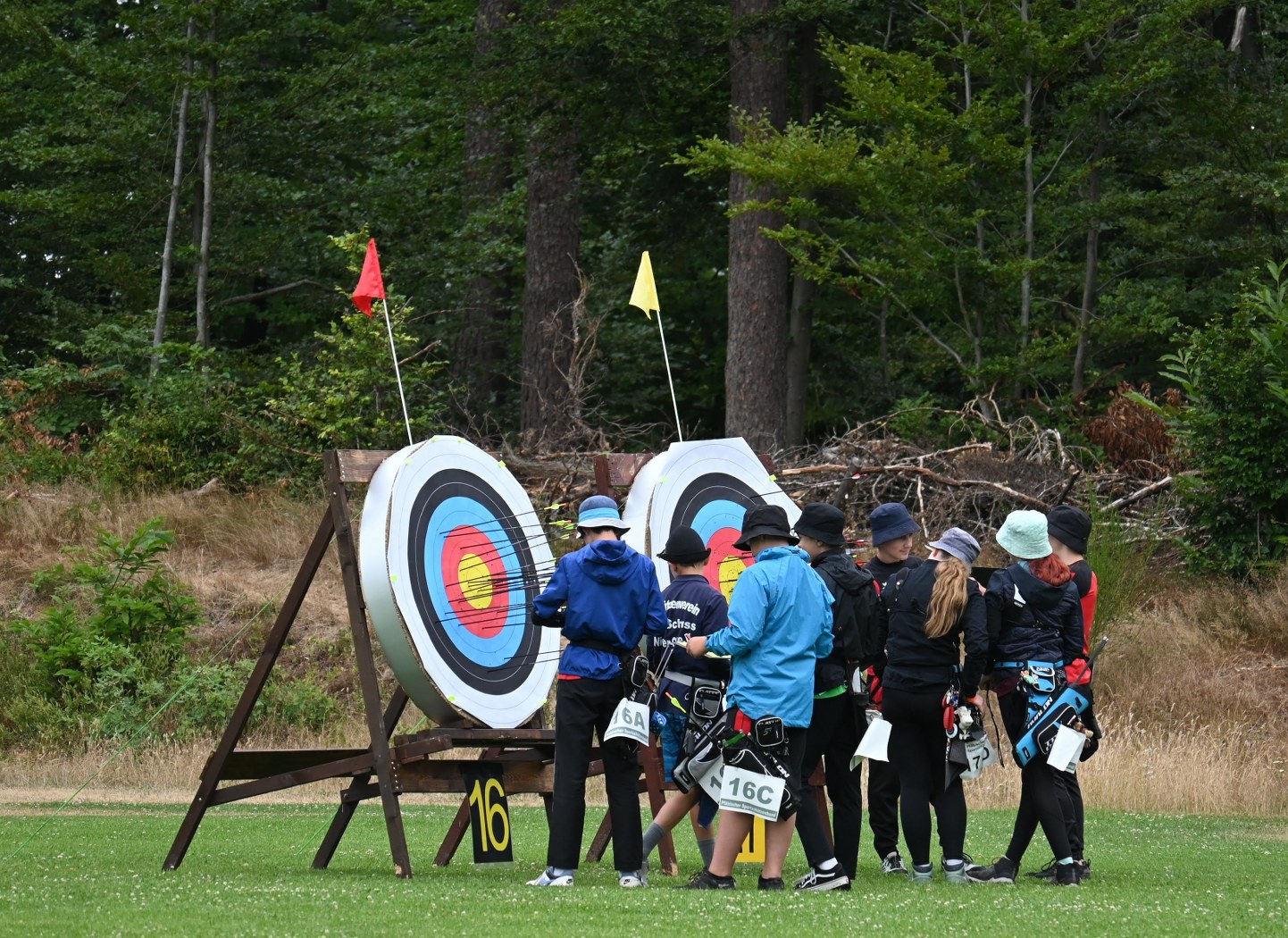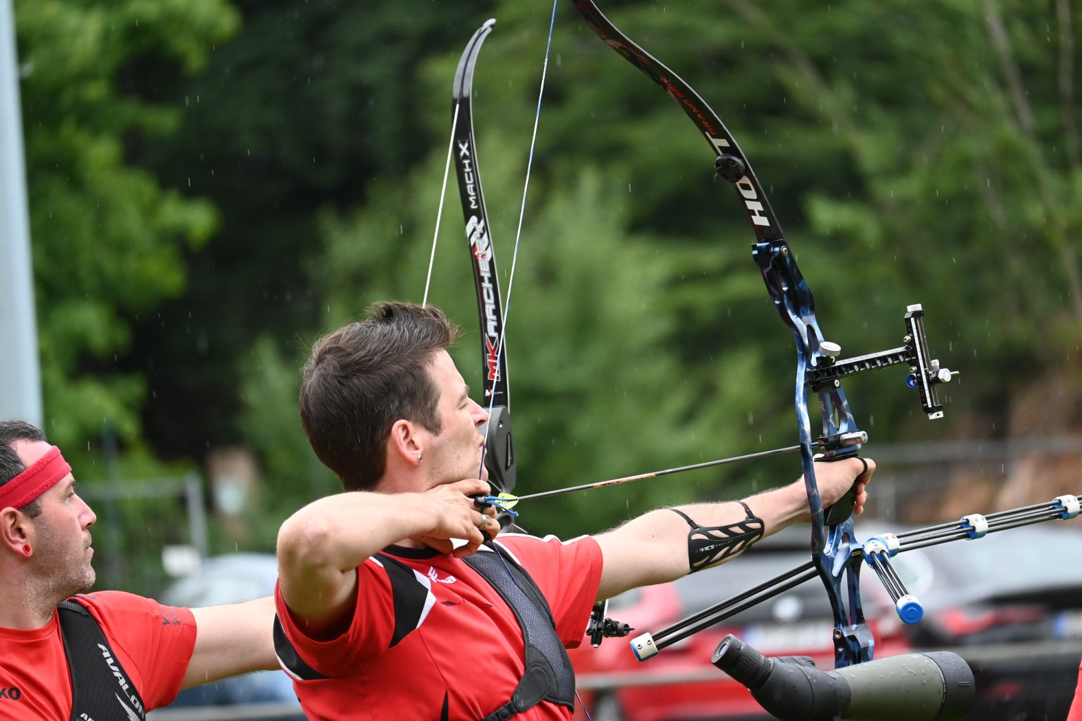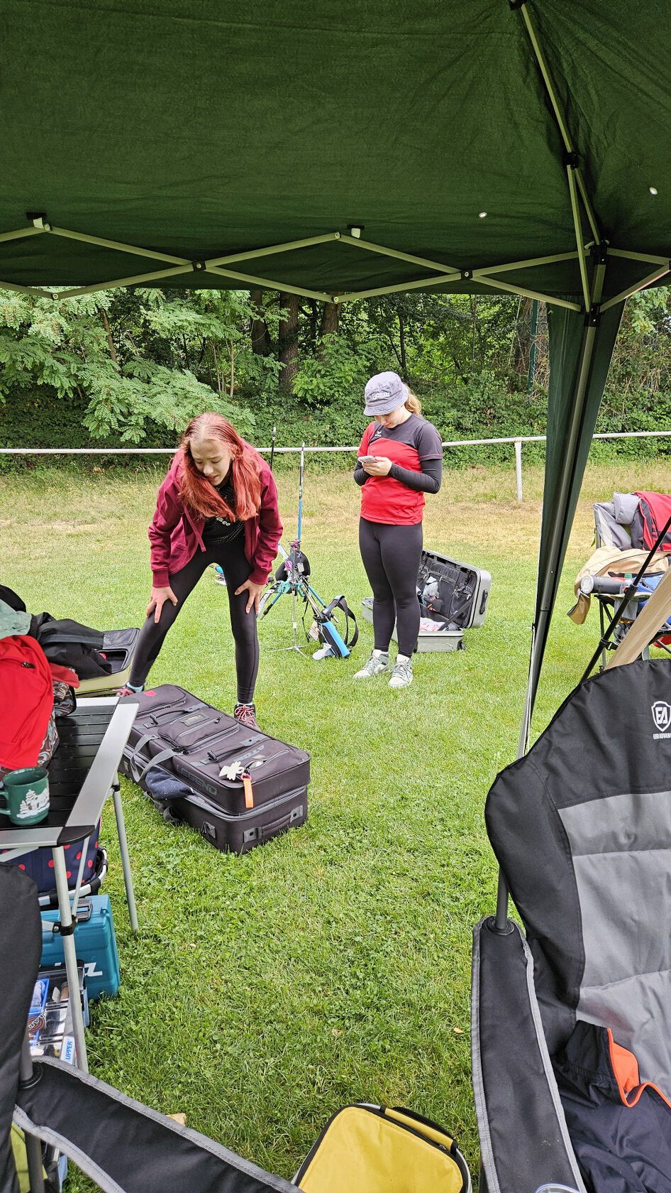 Sonntags waren dann die Recurveschützen an der Reihe. Statt des sonnigen Wetters des Vortags war heute Regen und Wind angesagt. Keine einfachen Bedingungen für die Teilnehmer.