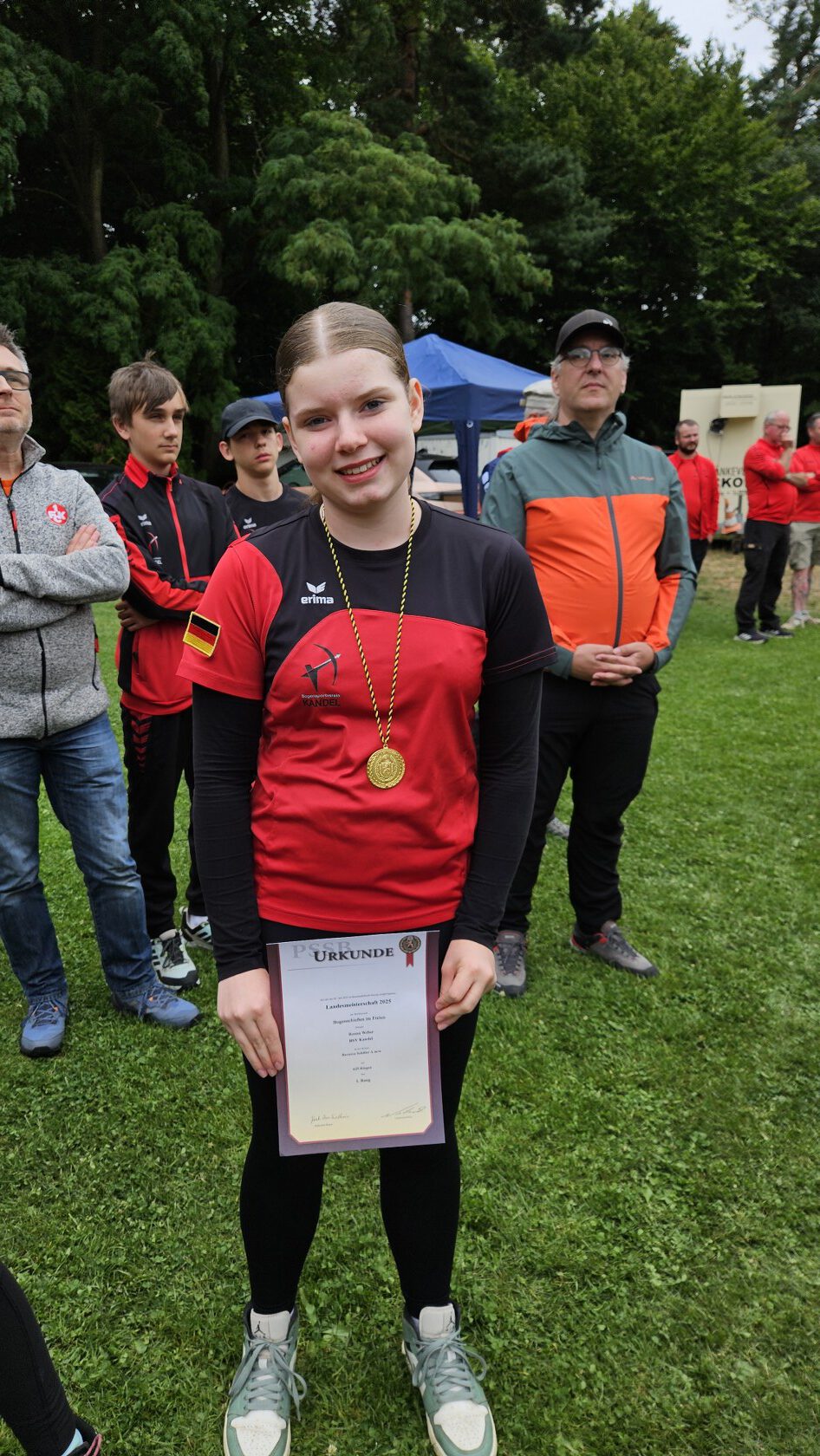 Ronna Weber wurde Landesmeisterin mit 625 Ringen und sicherte sich damit auch die Teilnahme an der Deutschen Meisterschaft. Auf Platz 4 folgte Lukas Wagner mit 565 Ringen, der sich im 2. Durchgang toll steigerte und das Podest nur knapp verpasste.