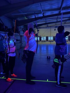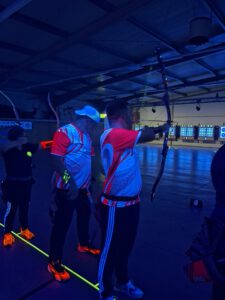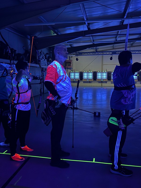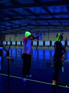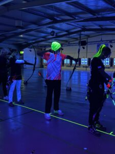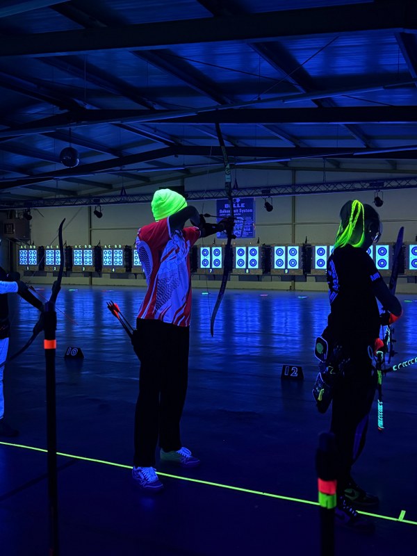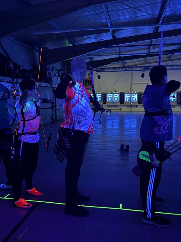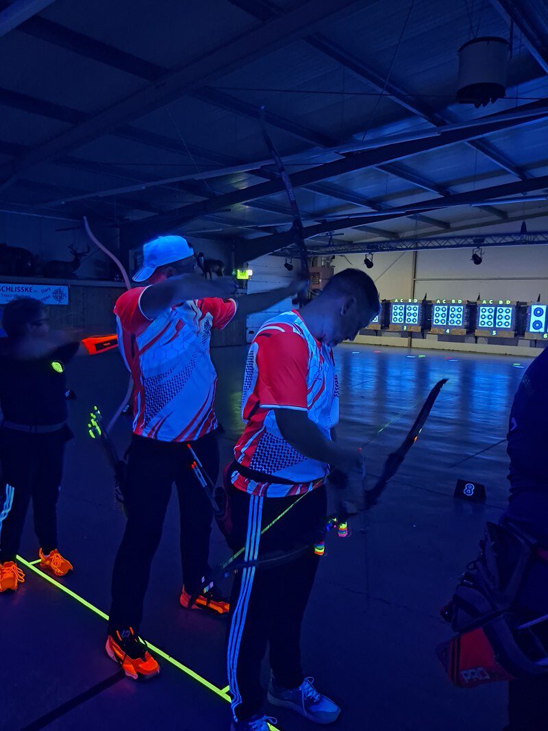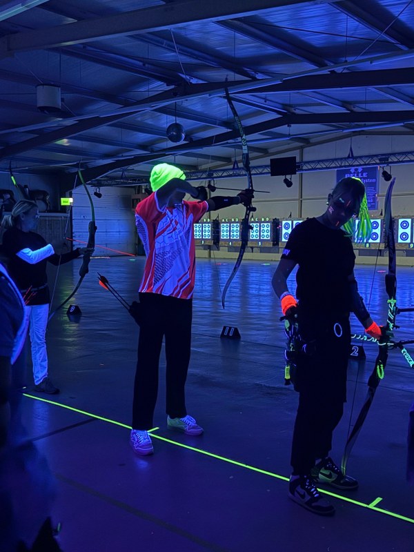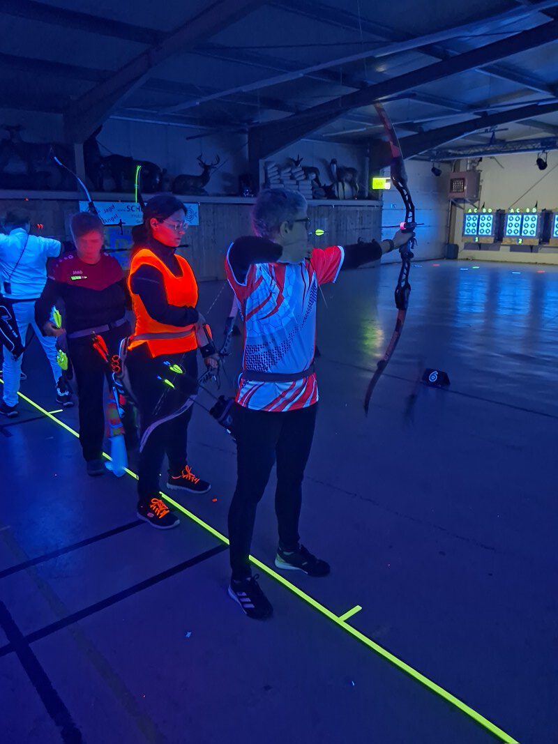 Für einige unserer Schützinnen und Schützen war es das erste Turnier dieser Art, doch alle meisterten die ungewohnten Bedingungen souverän. Die mit UV-aktiven Farben „geschmückten“ Bögen waren nicht nur optisch ein Highlight, sondern auch Teil des besonderen Charmes dieses Turniers.