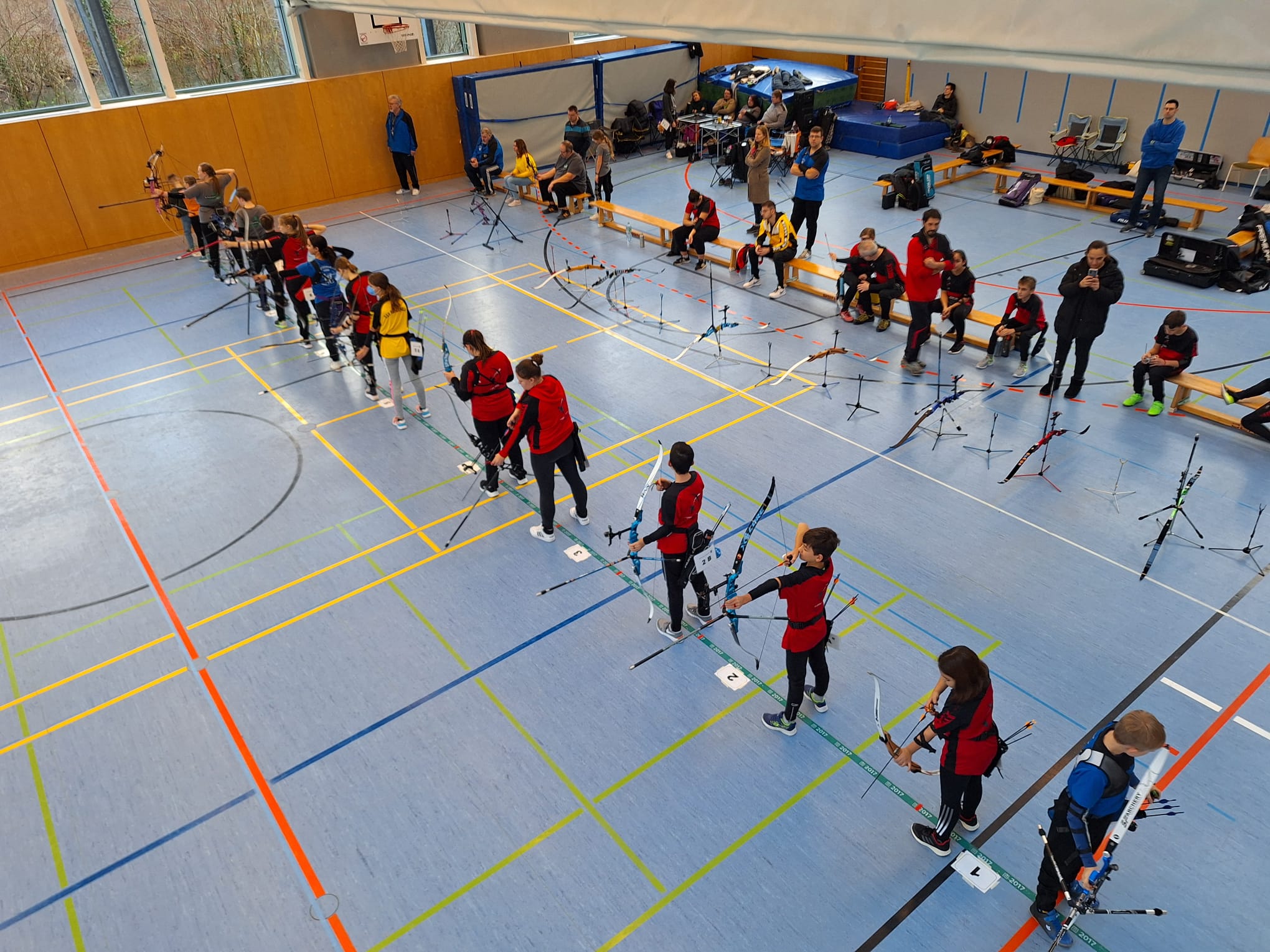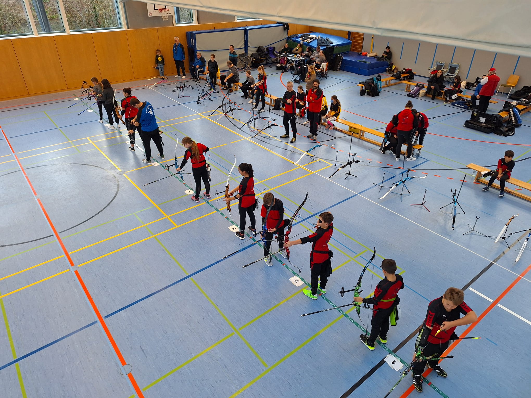 Insgesamt 56 Teilnehmer trafen sich in der Dammschule Wörth, um die Kreismeister zu ermitteln. Geschossen wurden dabei 60 Pfeile auf 18m, je nach Altersklasse mit unterschiedlichen Größen der Auflage. Mit 25 Schützinnen und Schützen stellte unser Verein die mit Abstand größte Teilnehmergruppe, darunter auch einige, die zuvor noch nie eine KM geschossen haben. Toller Einsatz unserer Mitglieder.