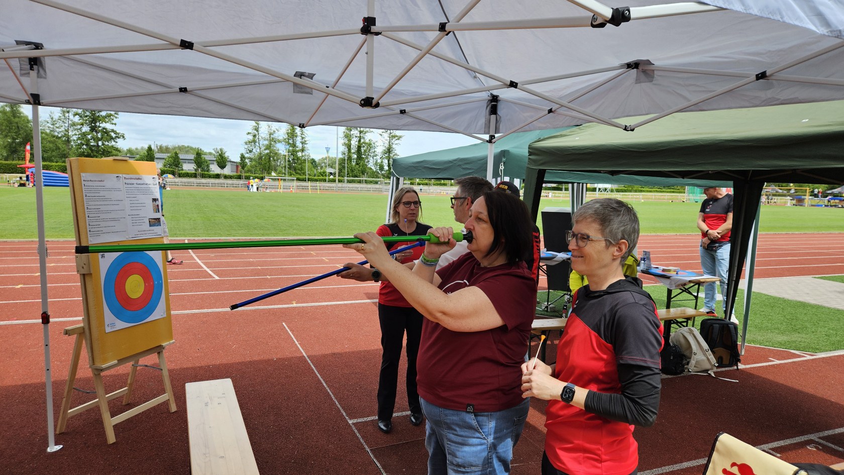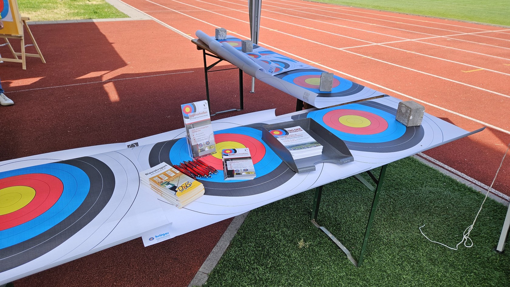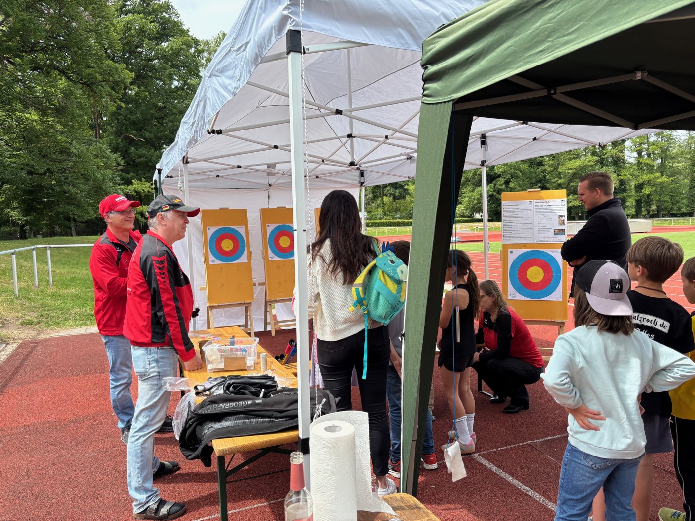 Leider war aus Sicherheitsgründen die Bogensparte nur in der Theorie präsentiert worden: Interessierte konnten sich die Bogenklassen Blankbogen, Recurvebogen mit Visier und Compound vor Ort genauer anschauen und die Unterschiede erklären lassen.