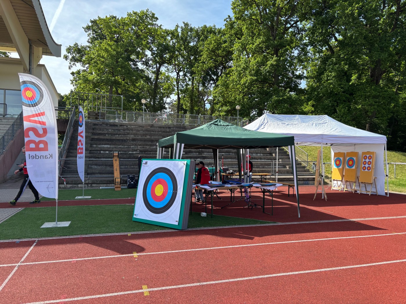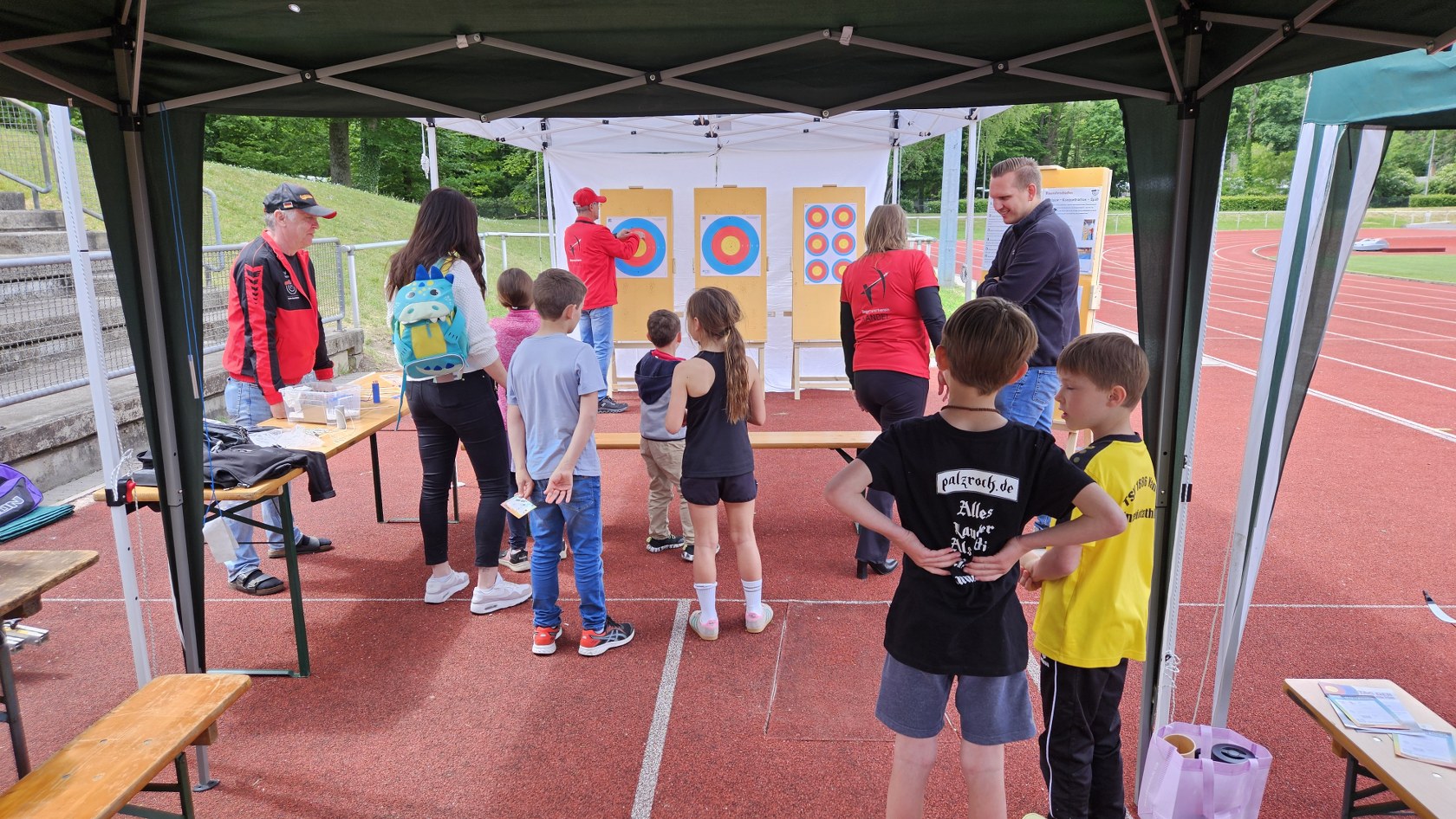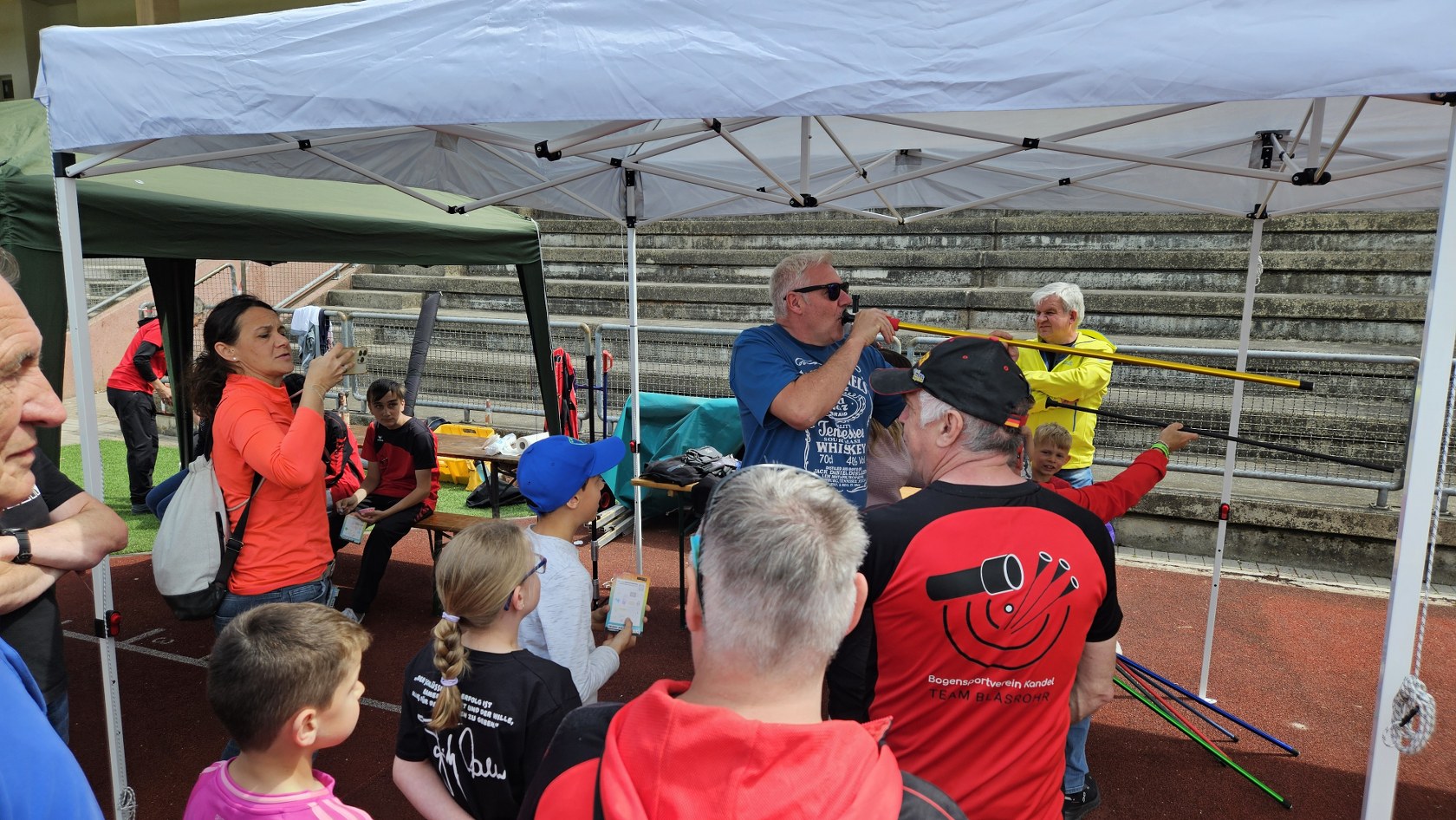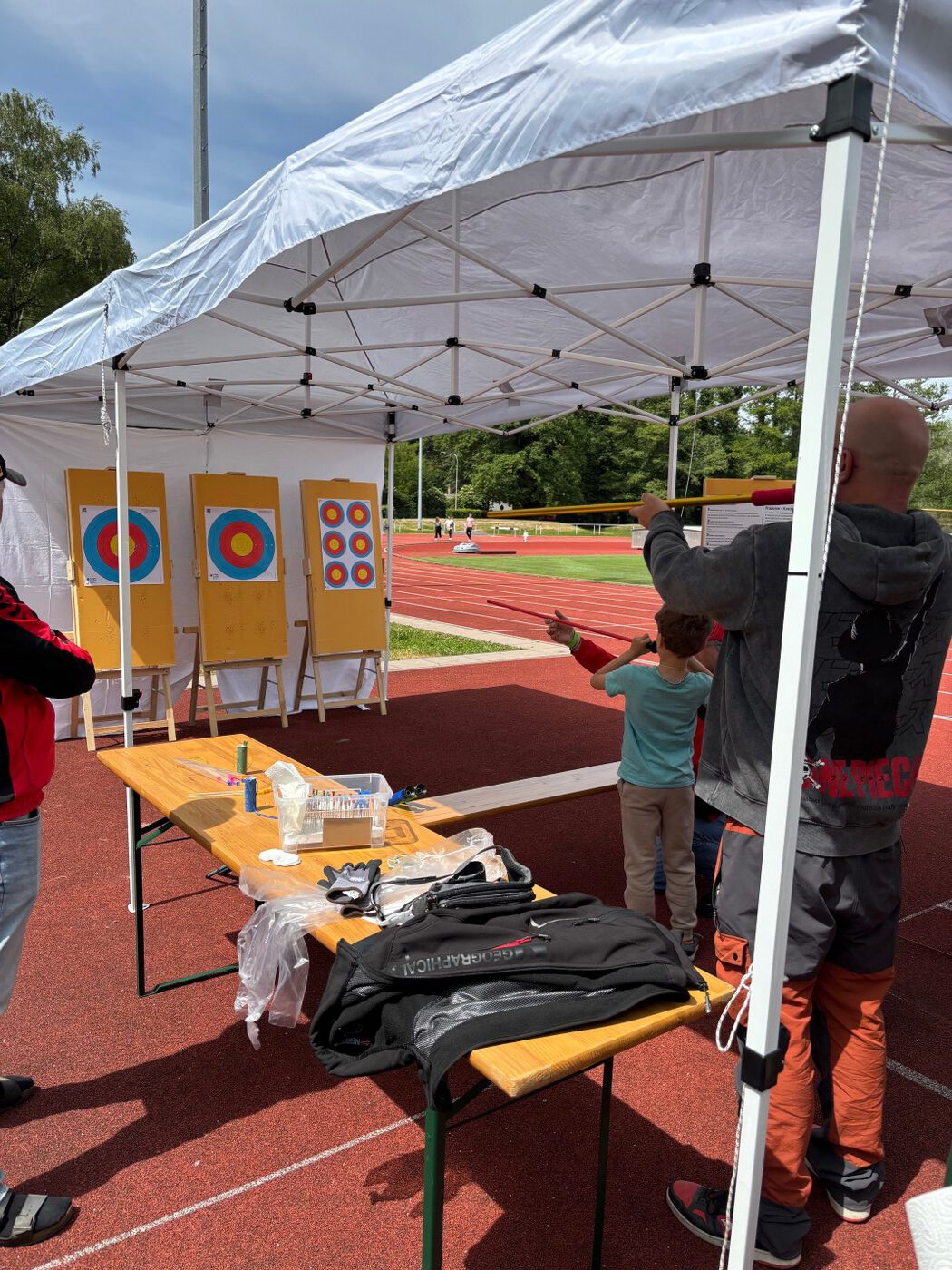 Leider war aus Sicherheitsgründen die Bogensparte nur in der Theorie präsentiert worden: Interessierte konnten sich die Bogenklassen Blankbogen, Recurvebogen mit Visier und Compound vor Ort genauer anschauen und die Unterschiede erklären lassen.