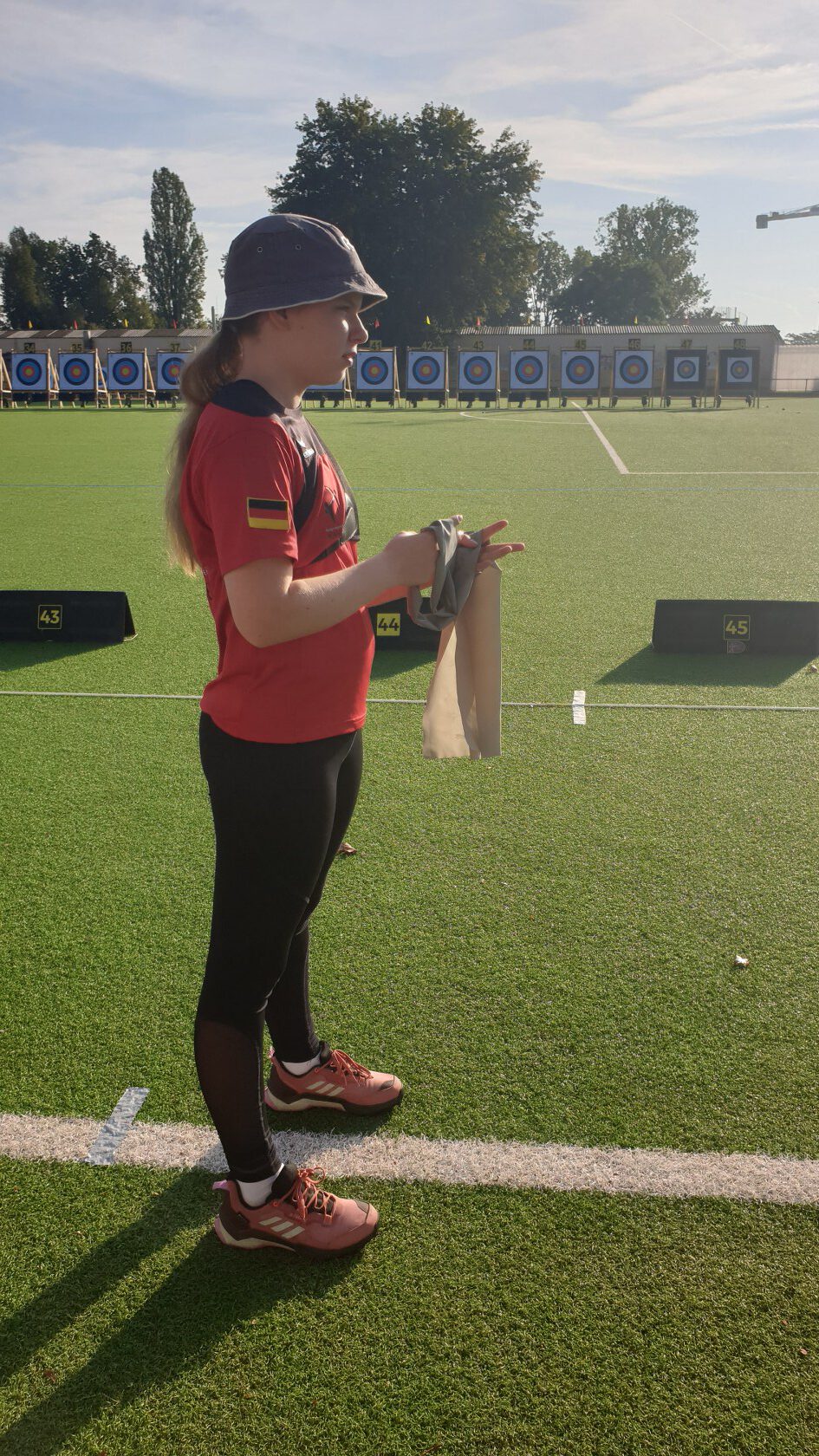 Vom BSV Kandel hatte sich Ronna Weber, die in diesem Jahr erstmals in der Klasse Schüler A Recurve (13-14 Jahre) startete, für die DM qualifiziert.