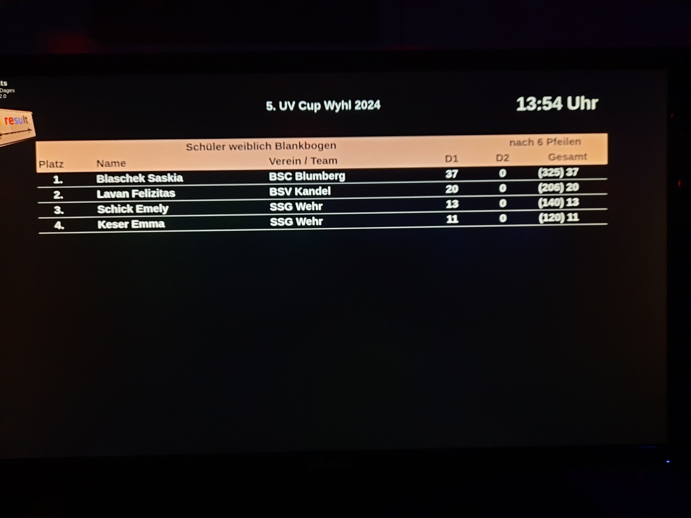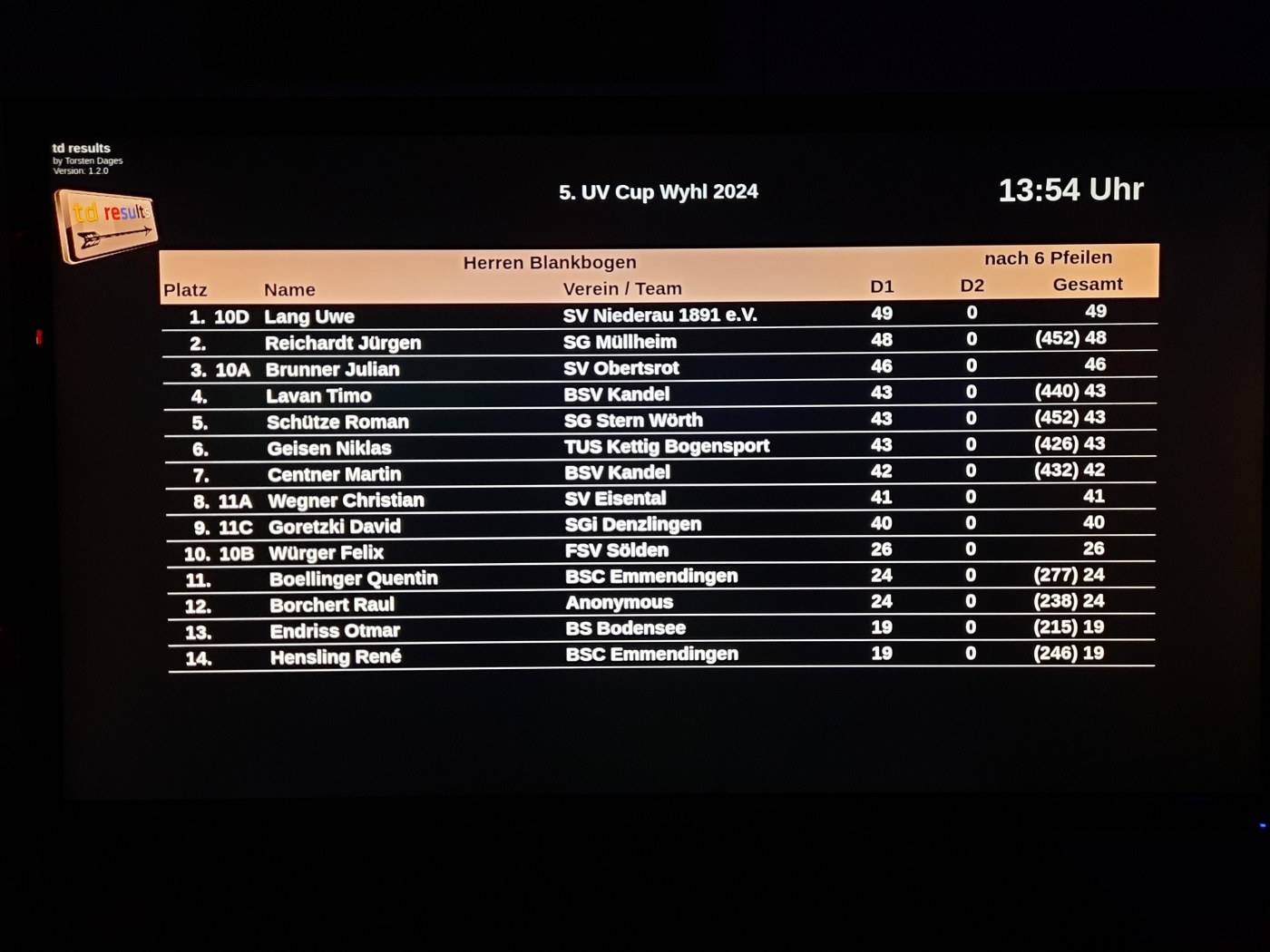 In Wyhl am Kaiserstuhl fand der 5. UV Cup statt. Bei diesem Cup werden 2×30 Pfeile auf 18m mit, den Altersklassen entsprechend, verschiede großen Auflagen geschossen. Allerdings geschieht dies bei Dunkelheit bzw. unter Schwarzlicht, was das Schießen deutlich erschwert. So können beispielsweise die Blankbogenschützen den Abgriff an der Sehne nur erahnen oder ein Compoundschütze das Release im Loop nur per Gefühl