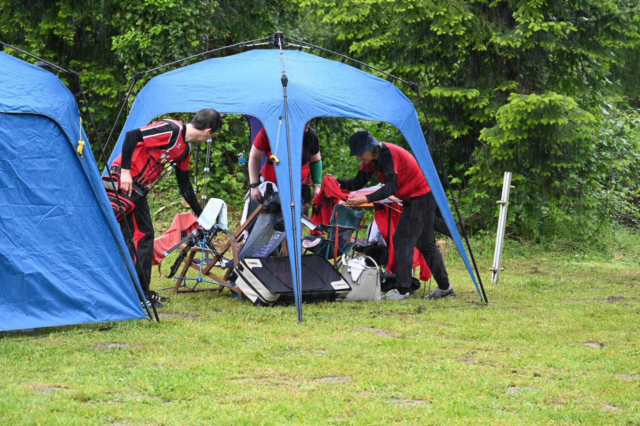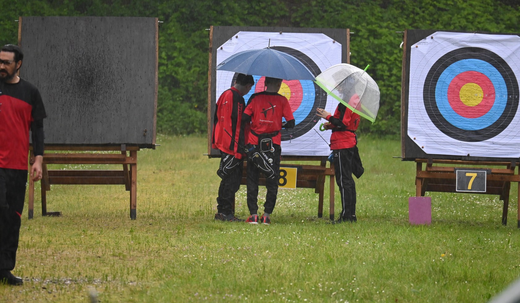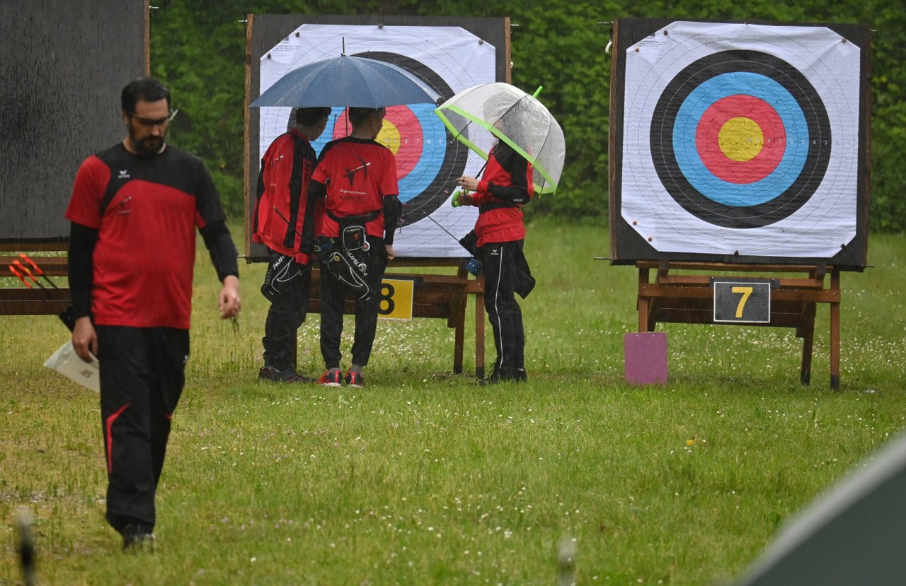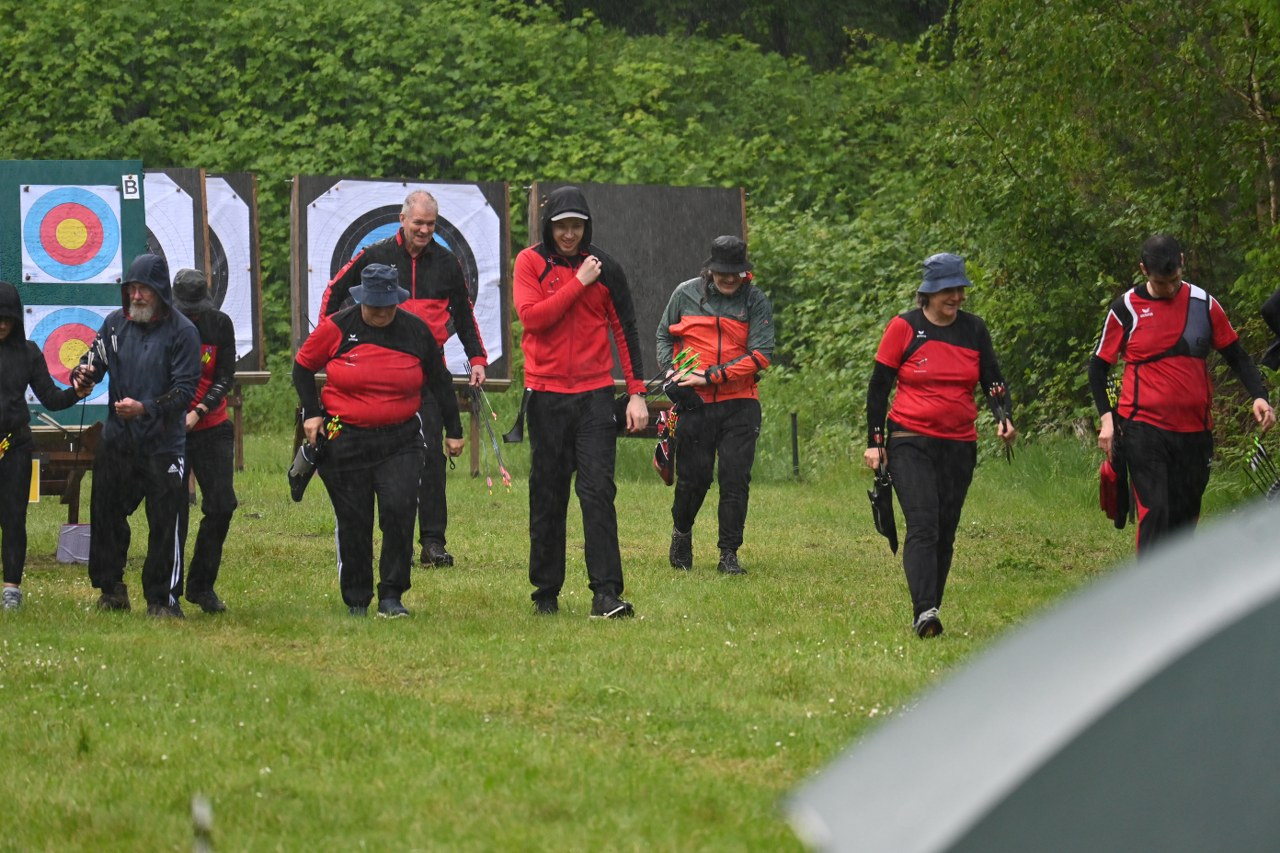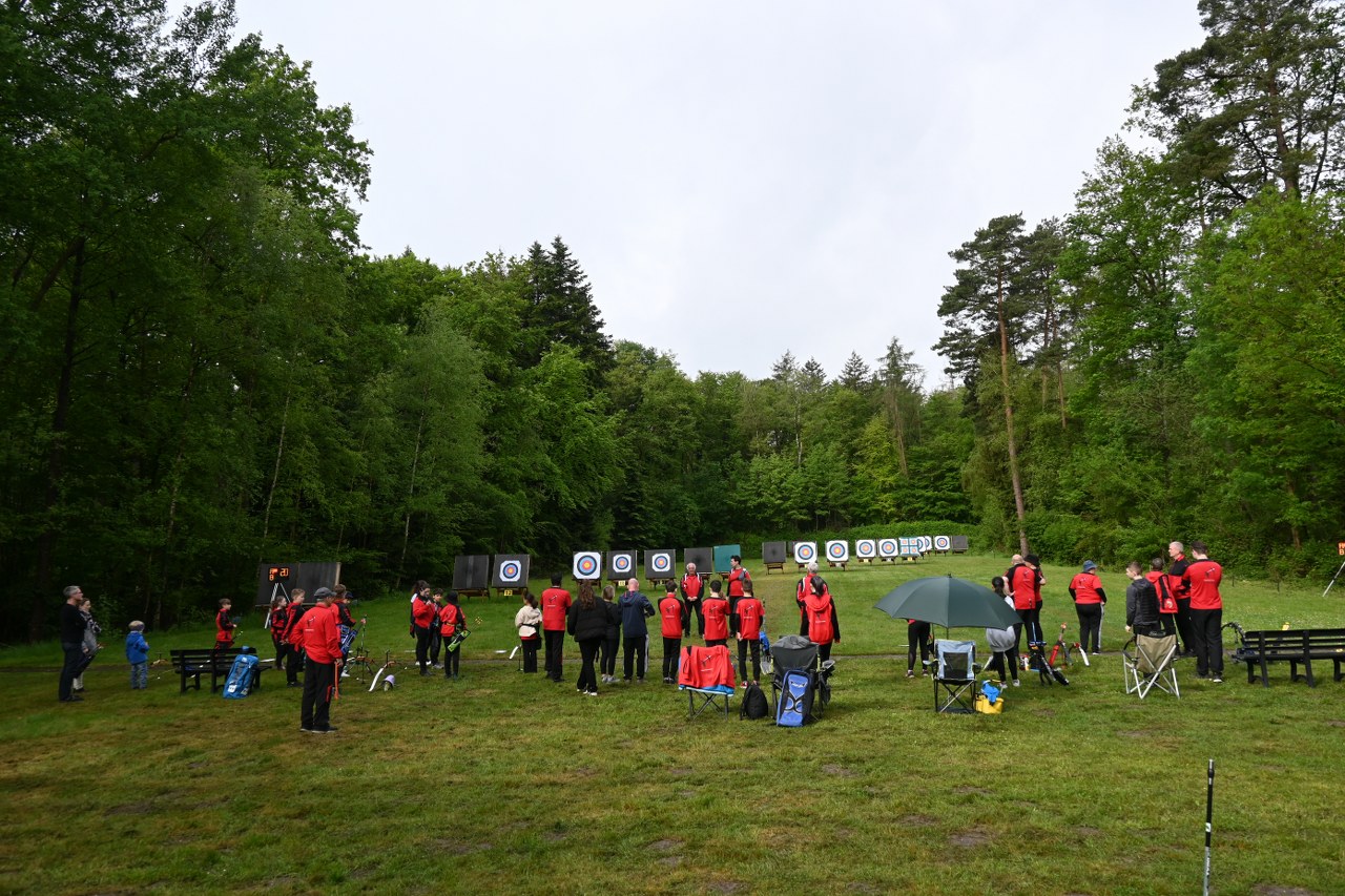 19 Erwachsene und 16 Jugendliche im Alter von 10-66 Jahren schossen 72 Pfeile auf Entfernungen von 18m bis 70m, je nach Altersklasse. Die maximale Punktzahl waren also 720 Ringe. Während das Wetter im ersten Durchgang noch halbwegs trocken war, wurde der zweite Durchgang durch heftige Schauer und starken Wind zu einer Herausforderung für die Teilnehmer und das Organisatorenteam.